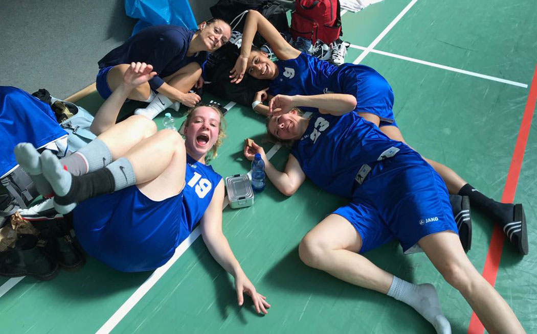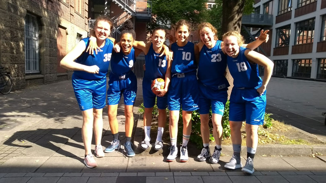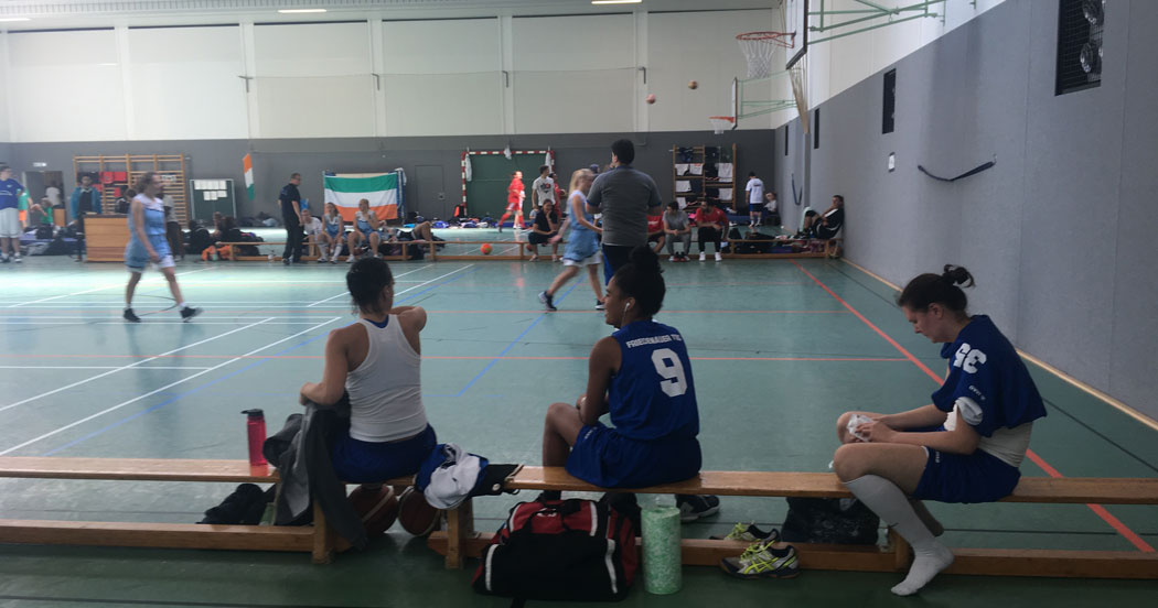Weiter ging’s mit dem nächsten Spiel. Die Mädels von HAPI sollten harte Gegnerinnen sein. „Magda springt höher, tausend mal höher“, Caro bekommt den Ball, passt zu Aya und schwupps, schon in Führung. Dabei blieb es zwar nicht, wir bewiesen jedoch mehr als Kampfgeist, Zusammenspiel und gute Defense und waren sehr stolz auf uns. „Na langsam wird’s doch“, dachten wir. Noch ein Spiel- gegen die Gastgeberinnen- und dann ist der erste Tag geschafft. Emma holt uns alle Rebounds, bis – krrrkrrrzzz ein Sprung auf eine Gegnerin ihr Band anreißt. Verdammt! So haben wir uns das nicht vorgestellt. Aber wir konnten weiterhin sowohl gut mithalten, als auch Fans für uns gewinnen. Danke für den Support und gute Nacht!