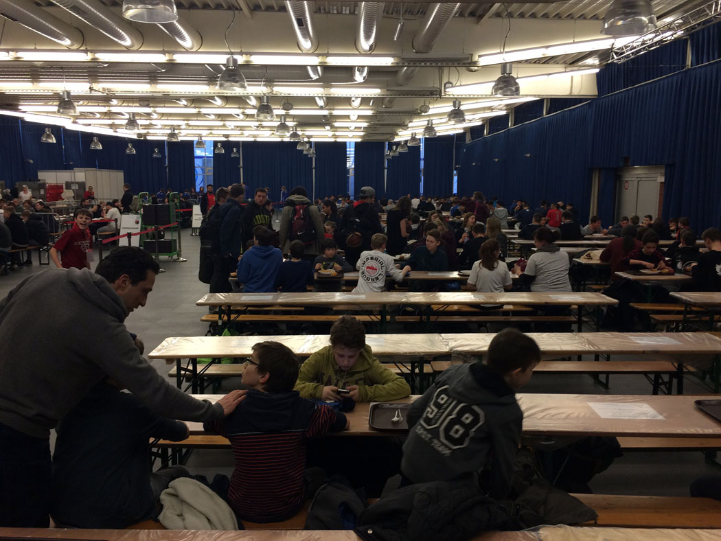 Doch der Reihe nach. Unsere 2004er bestreiten die Fahrt mit der Bahn. Los geht es am Mo, 21.03. früh morgens vom Hauptbahnhof. Nach der langen Bahnfahrt, die die Jungs harmonisch und ruhig gestalten, erfolgt der Check-in im Wiener Turnierbüro. Wir werden freundlich begrüßt. In unserer Unterkunft angekommen (eine Schule in der Nähe der Stadthalle) erwartet uns im dritten Stock ein Klassenraum mit Feldbetten (fünf Tage in einem Feldbett schlafen ist eine echte Herausforderung!). Bereits am ersten Abend machen sich unsere Jungs mit einem Haufen Mädels aus Bosnien bekannt. Artikuliert wird mit Händen und Füßen.