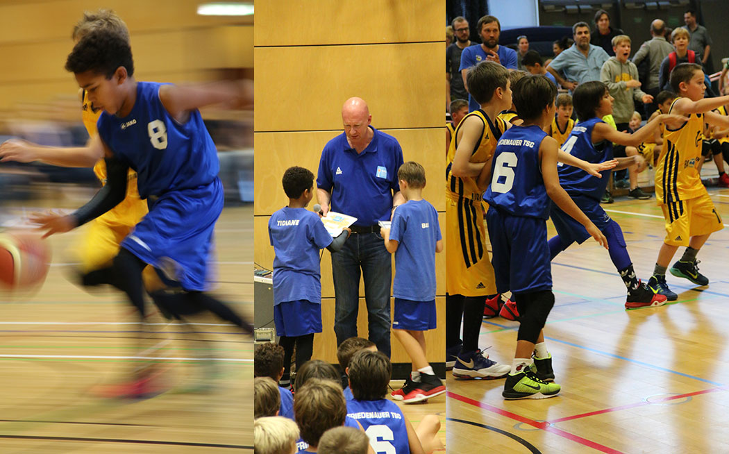 Im Finale trafen wir auf die Mannschaft namens ALBA Weiss (in gelben Trikots). Unser Team war derart motiviert, dass es dem Gegner lange Zeit nur drei Punkte gestattete, während es das eigene Punktekonto stetig hochschraubte. Am Ende erzielte unser Team den Turniersieg mit einem 34:20 und avancierte zum offiziellen U11-Jahrgangssieger des BBV. Die anschließende Siegerehrung wurde von Landestrainer Robert Bauer vorgenommen.