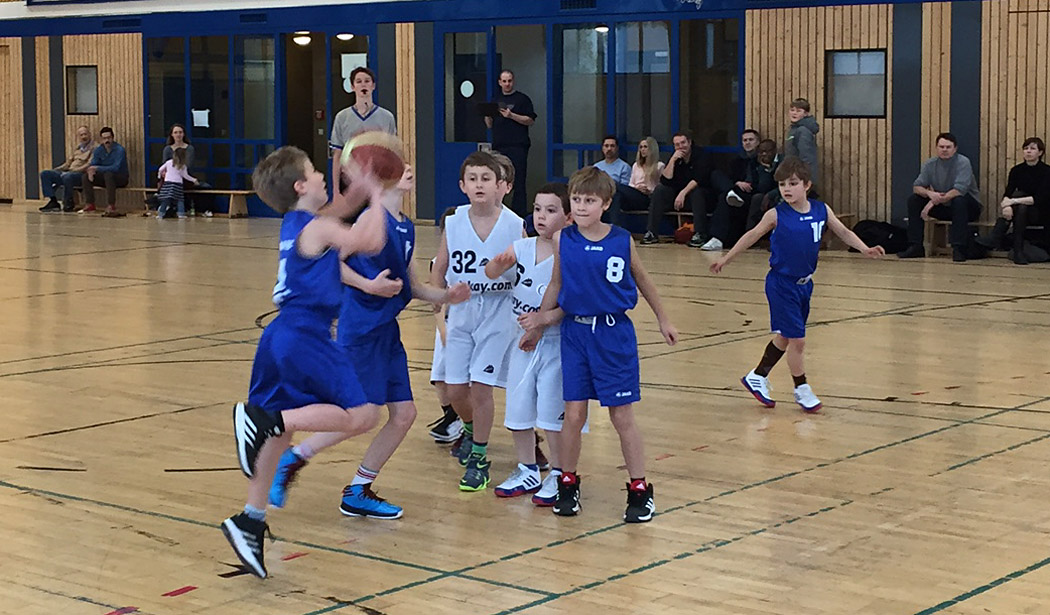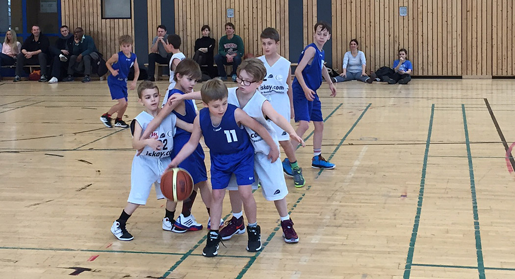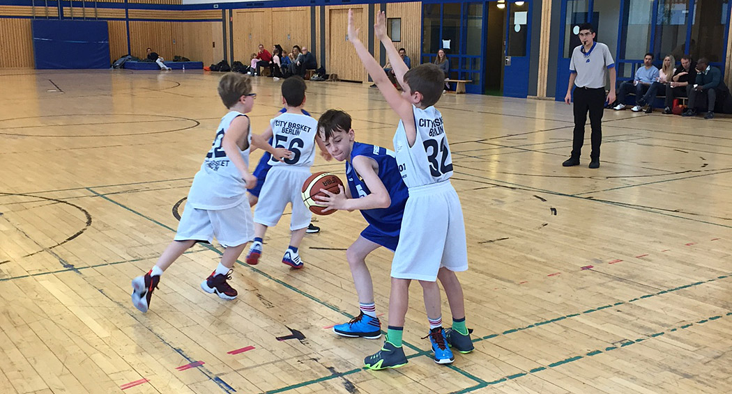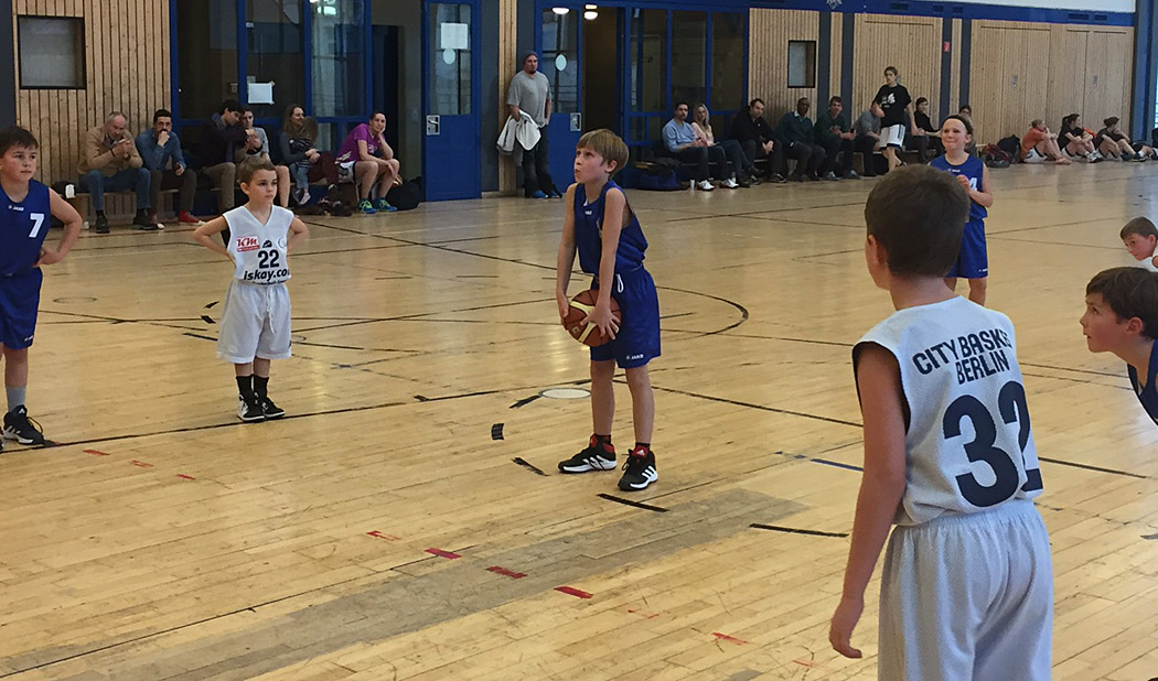In der Münchener Straße empfing der Friedenauer TSC, die sich selbt lustigerweise die „Mammuts“ nennen, City Basket. Das Spiel startete ausgeglichen mit Möglichkeiten auf beiden Seiten, aber wenig Körben. Aber es war alles andere als langweilig. Die Kinder kämpften um jeden Ball, nach dem zweiten Zehntel stand es knapp 8:7 für Friedenau. Doch dann drehte Lenny von den Mammuts auf, er und seine Kollegen Ragnar und Milan sorgten für 12:3-Lauf, mit dem sich Friedenau auf 20:10 absetzen konnte. Und im nächsten Zehntel folgte ein 8:2-Lauf dank wunderschönem Passspiel. Was mir dabei besonders auffiel, war, dass mit Alex, Caine, Leo und Sam alle vier Friedenauer Kinder, die in diesem Zentel auf dem Feld waren, punkten konnten. So eine ausgeglichen starke Kinder-Mannschaft habe ich wirklich selten gesehen! Im fünften Zehntel dann hatten beide Teams Wurfpech, nur City konnte einen Freiwurf verwandeln.