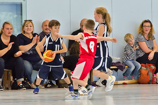 Aufregung und Vorfreude waren groß bei der U8, die am Sonntag (4.10.) ihr allererstes Spiel bestritt und auswärts beim Vfl Lichtenrade antreten musste. Von Nervosität war allerdings nur im ersten Zehntel ein wenig zu spüren, als die ersten Würfe knapp den Korb verfehlten. Dann gings aber mächtig los, und die Mannschaft konnte mit einer ungeheuer konzentrierten und einsatzfreudigen Teamleistung einen erfolgreichen Angriff nach dem anderen absolvieren. Zum Pausenpfiff stand ein beruhigendes 18:0 für den TSC auf dem Anschreibebogen. Egal ob Groß oder Klein, lange dabei oder ganz frisch zur Mannschaft dazugestoßen – alle brachten vollen Einsatz, kämpften um jeden Ball und setzten alles im Training Geübte um, als wäre es das zwölfte Spiel des Teams und nicht das erste! In der zweiten Hälfte kam dann auch Lira zu einigen schönen Körben, am Ende hieß es aber 31:7 für den TSC (im offiziellen Spielplan steht wegen eines Anschreibefehlers nur 29:7).