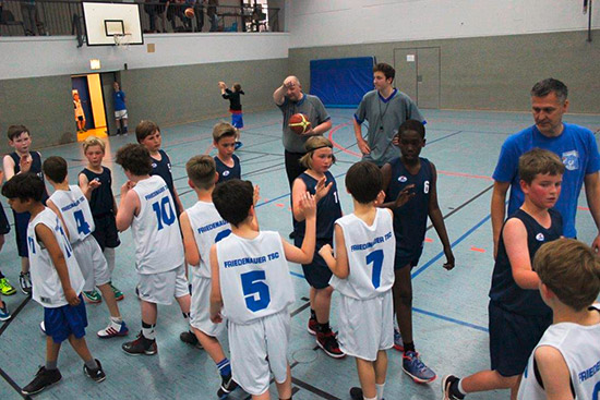 Die Partie war zu jeder Zeit eng. Ein Schlagabtausch folgte dem nächsten. Doch Friedenau blieb stabil, nicht zuletzt dank der fantastischen Unterstützung unserer U11-Spieler, die die Possehlstraße in ein wahres Tollhaus verwandelten und ihre U10 anpeitschten. Da war sie, diese besondere Verbundenheit zwischen beiden Teams. Angefeuert durch die Älteren, schaffte es unser Team 1:30 Minuten vor Schluss erneut die Führung zum 36:35 zu übernehmen. Was nun folgte glich einer Abwehrschlacht. Der Ballbesitz ging hin und her. 23,9 Sekunden vor Schluss erneut Ballbesitz für Litauen. Friedenau kämpft, ackert und schafft es letztendlich keinen Punkt mehr zu kassieren! Jubel, Erlösung, Freudentränen!!
