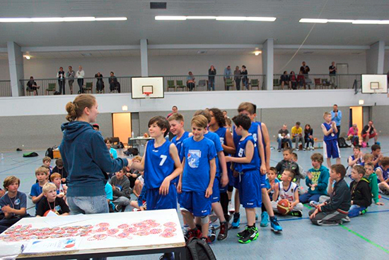 Von sehr netten und freundlichen Gastgebern (Danke, Marisa!) wurden wir am Bahnhof in Empfang genommen und zur Sporthalle geshuttlet. Dort wartete das Abendessen auf uns. Eine nette Begrüßung, wie wir es schon im Vorjahr kennen gelernt haben. Lübeck ist immer eine Reise wert! In so einer guten Atmosphäre darf man auch gut spielen, dachten sich offenbar unsere Jungs. Und so erreichten beide Teams die Finals in ihren Altersklassen. Während die U11 nichts anbrennen ließ gegen den Gastgeber Lübeck 1 und ihr Spiel souverän gewann, hatte es unsere U10 mit einem sehr starken Gegner aus Litauen zu tun. Die Partie versprach Brisanz, denn in der Vorrunde verlor unser Team gegen die litauische Mannschaft Klaipedos Krepsinio Mokykla mit 23:34. Nun hieß es also Revanche nehmen. Zeigen, dass es besser geht!