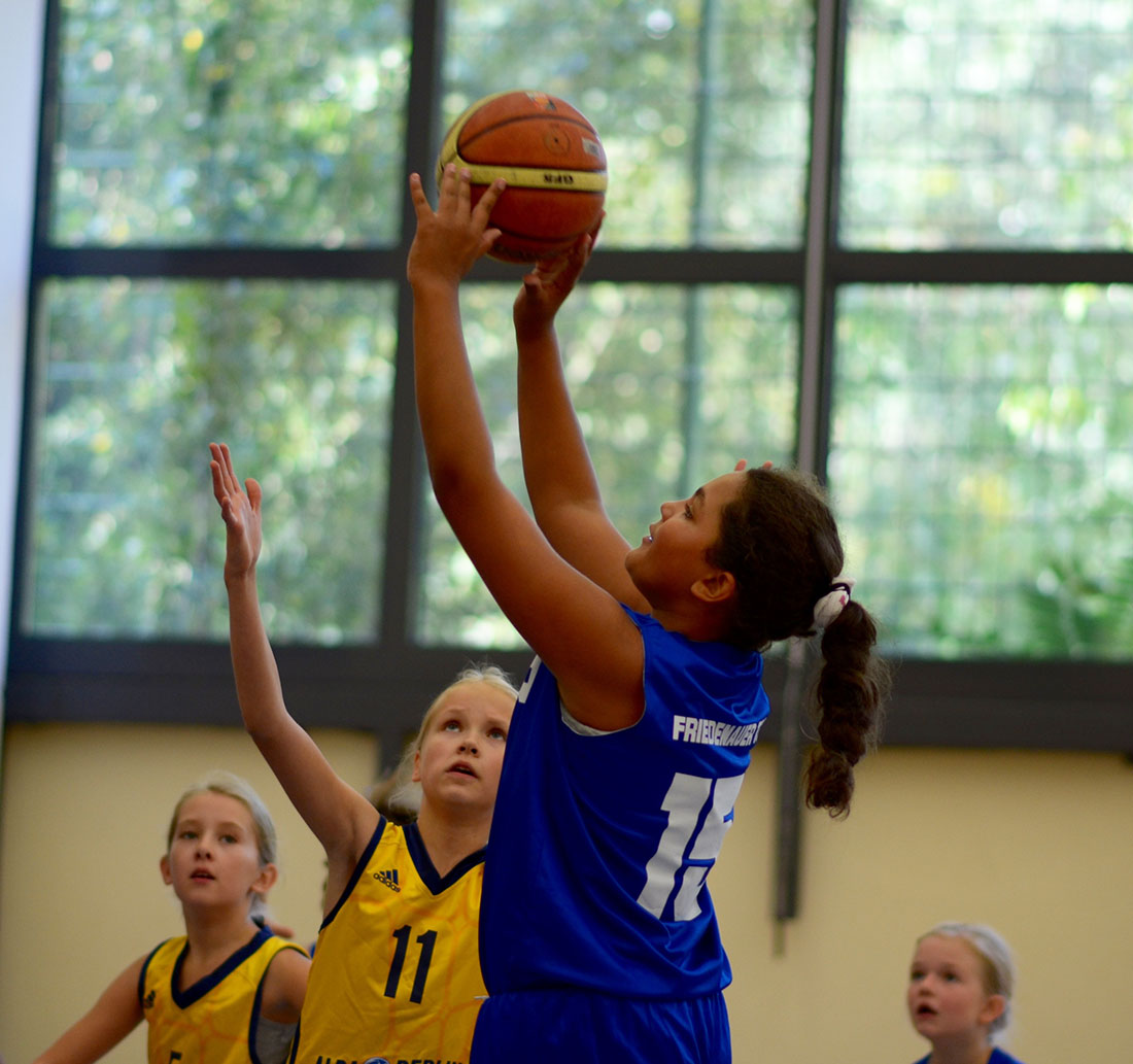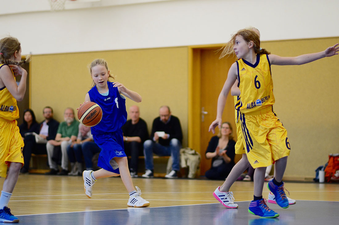 Große Aufregung vor dem Auftakt zum allerersten Spiel unseres erst im April neu gegründeten Friedenauer Mädchen-Teams gegen Alba 1. Gleich von Anfang an sollten die Mädels jedoch unter Beweis stellen, dass man positive Anspannung und Spaß am Spiel in Punkte umwandeln kann. Dank tollem Zusammenspiel und guter Verteidigungsarbeit konnten wir sehr schnell in Führung (20:2 im 2/10) gehen und sollten diese auch nicht mehr abgeben.