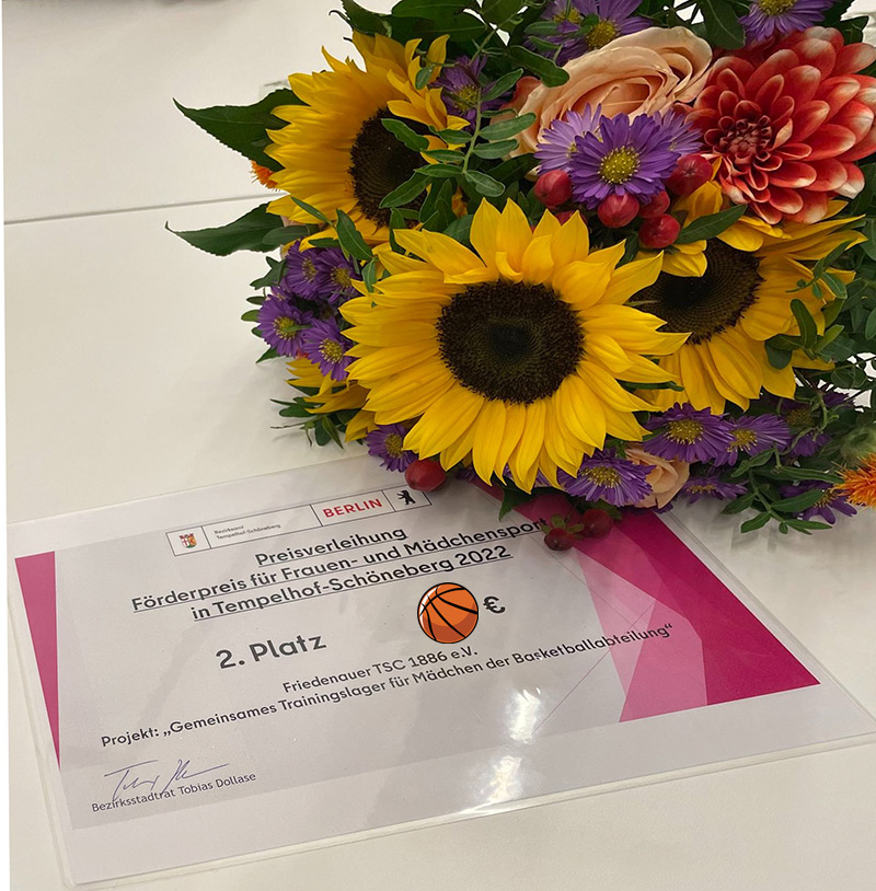 Bei der Preisverleihung des Förderpreises für den Frauen- und Mädchensport in Tempelhof-Schöneberg 2022 hat die Basketballabteilung des Friedenauer TSC unter acht Mitbewerbern den 2. Platz belegt!