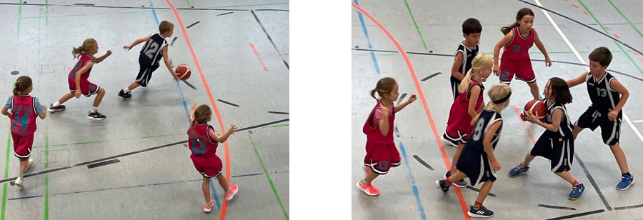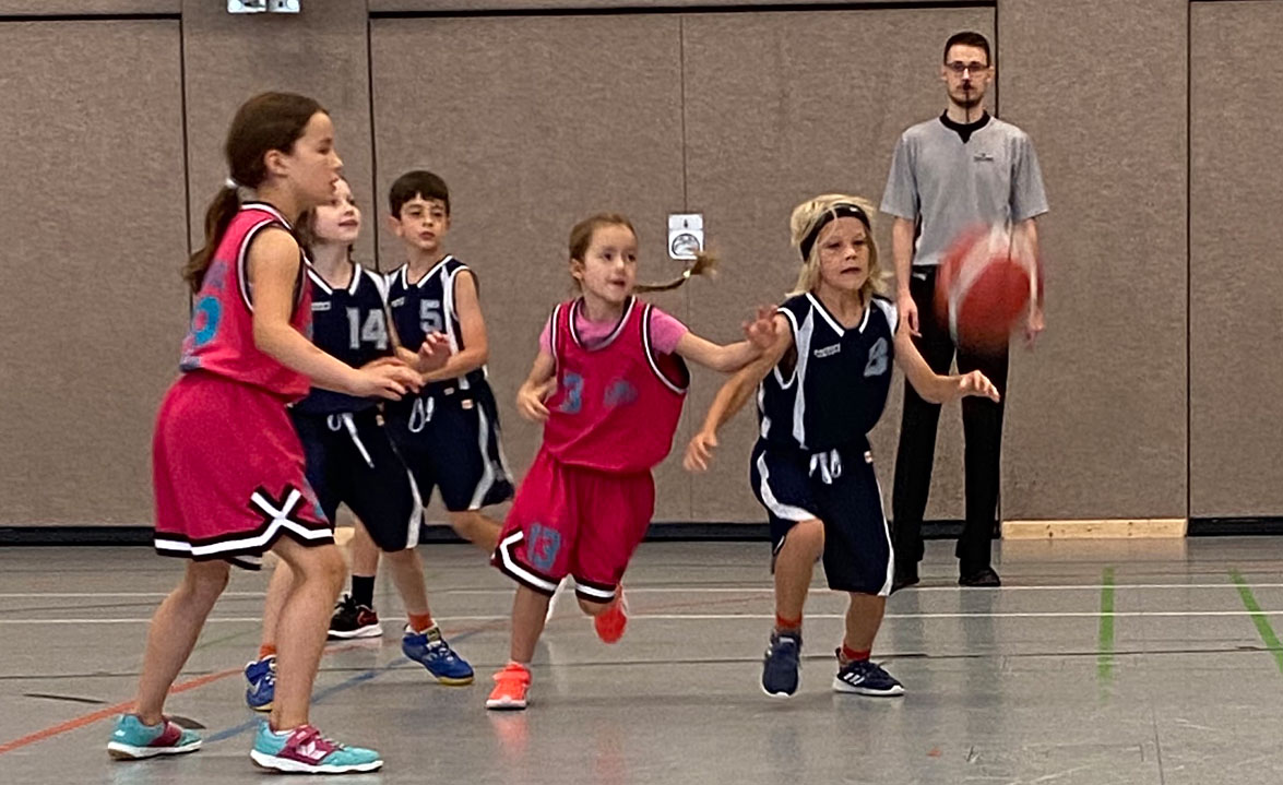 Unsere Friedenauer Minis haben sich von Anfang an mächtig ins Zeug gelegt – im Angriff wie in der Verteidigung. Durch das Abfangen zahlreicher Pässe der Gegnerinnen und den Gewinn vieler Rebounds haben sie sich immer wieder in den Angriff gebracht. Wenn es auch manchmal ein paar mehr Versuche brauchte bis der Ball endlich im Korb landete, so gelang dies schon viel besser als in der letzten Saison. Ob mit Korblegern, Nah- und sogar Distanzwürfen und Freiwürfen, stetig konnten die Mini-Mammuts ihre Führung ausbauen. Toll war das Passspiel untereinander und auch das schnelle Umschalten zwischen Angriff und Verteidigung.
