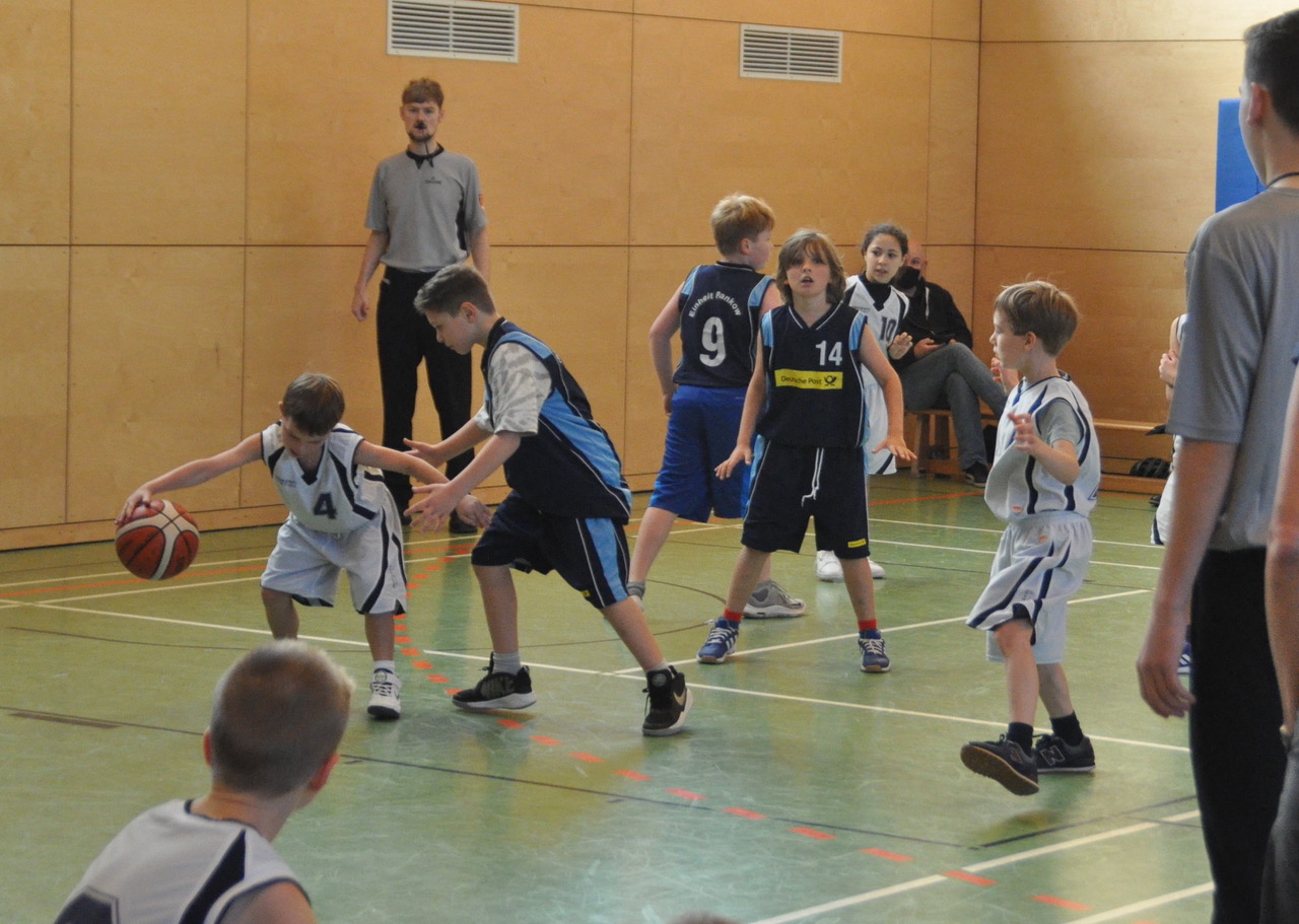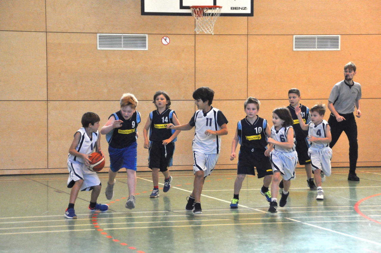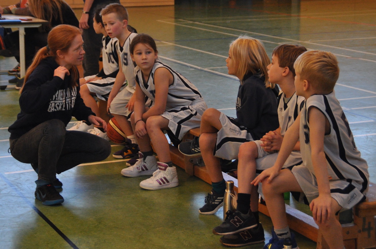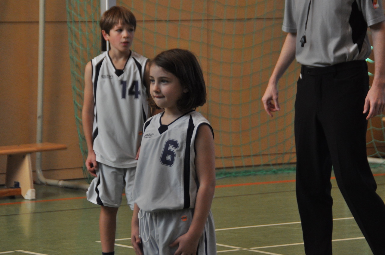 Nach einem umkämpften, aber vielversprechenden ersten Achtel, bei dem unsere Minis mit einem Punkt führten, übernahmen die Pankower die Regie. Im zweiten Achtel erarbeitete sich Pankow dann einen deutlichen Vorsprung, den das Team Achtel um Achtel weiter ausbaute. Allein das siebte Achtel gewannen unsere Mammuts 11:8, was insbesondere an der starken Freiwurfquote unserer Minis lag, von denen drei ihr Spieldebut hatten.