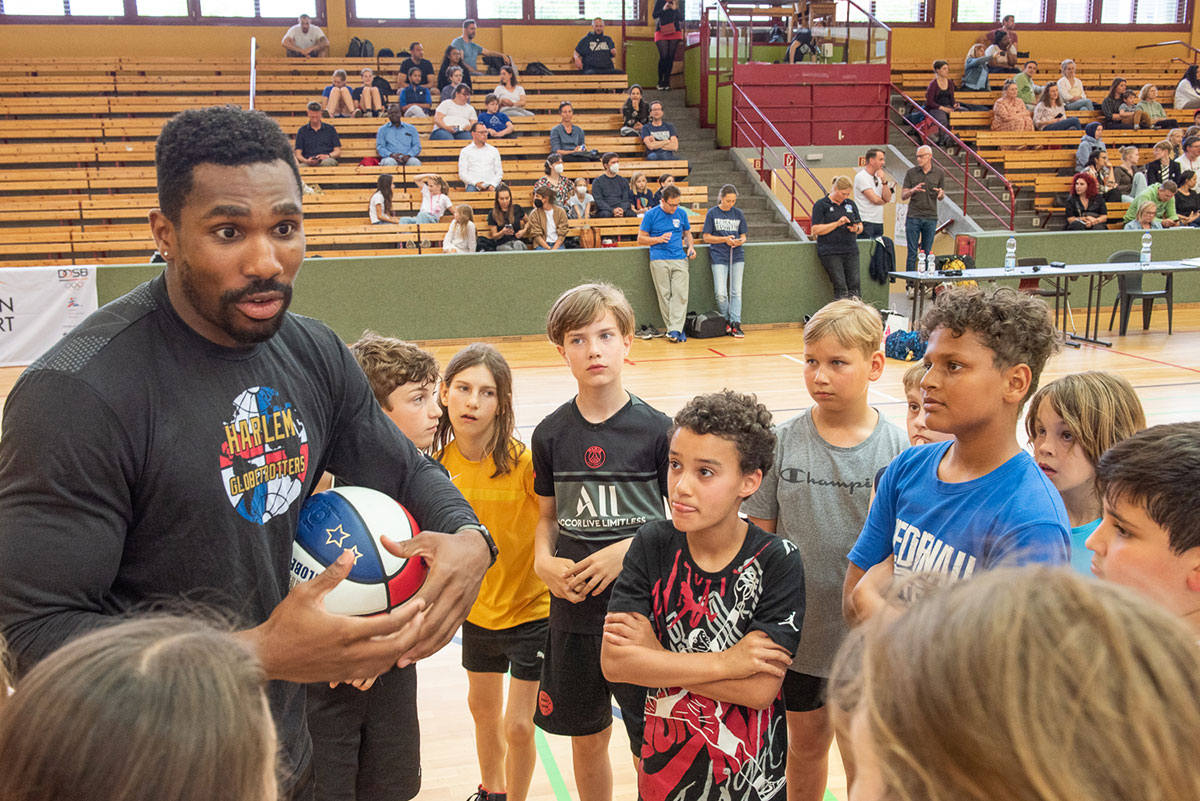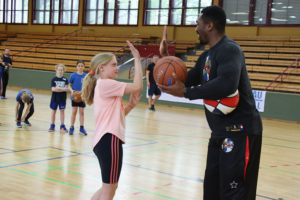 Harlem Globetrotters trainieren mit Mammut Kids