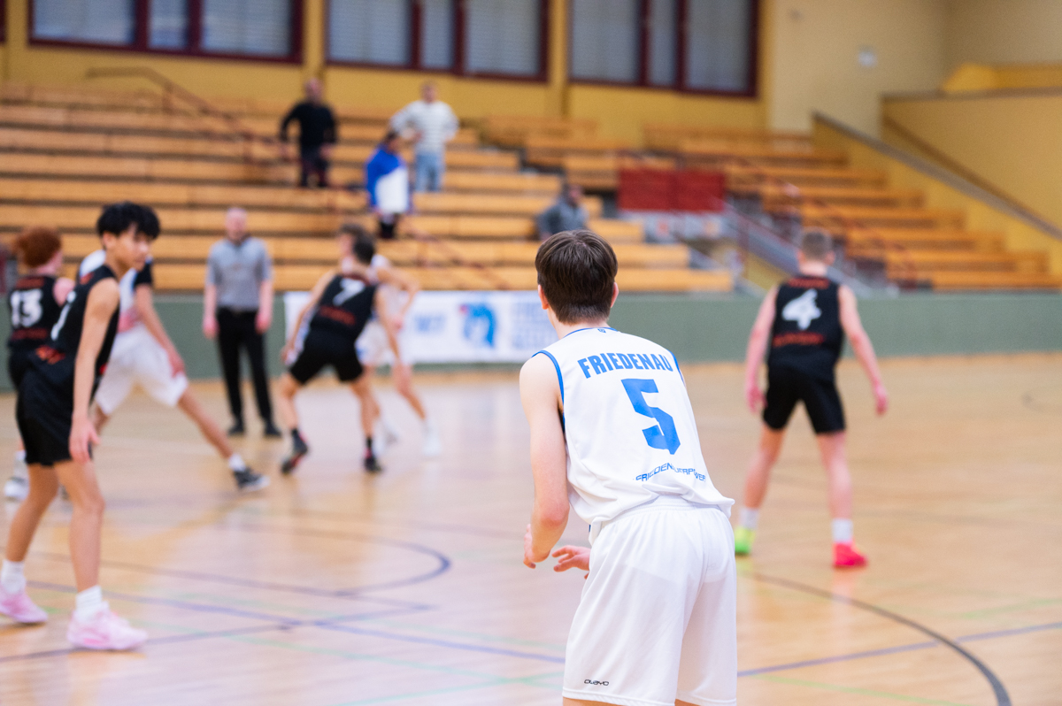 Ein echter Krimi sollte uns im vierten und letzten Viertel erwarten. Nach vielen kleinen Fouls standen unsere Mammuts im Rückstand, doch das hieß: Nicht aufgeben! Sie kämpften sich zurück und so stand es knapp 3 Minuten vor Schluss 71:71. Alle waren on Fire und das bedeutete für Jack, der heute nur als Zuschauer hinter seinem Team saß, doppelt so laut auf die Trommel zu schlagen. Unsere Nummer 5 Benjamin hatte einen guten Tag und schenkte den Gegnern gleich zwei Dreier zum Ende ein. Der Vorsprung konnte dadurch etwas ausgebaut werden und nach diesem Krimi-Viertel konnten sich alle Friedenauer über einen verdienten 80:78 Sieg freuen!!!