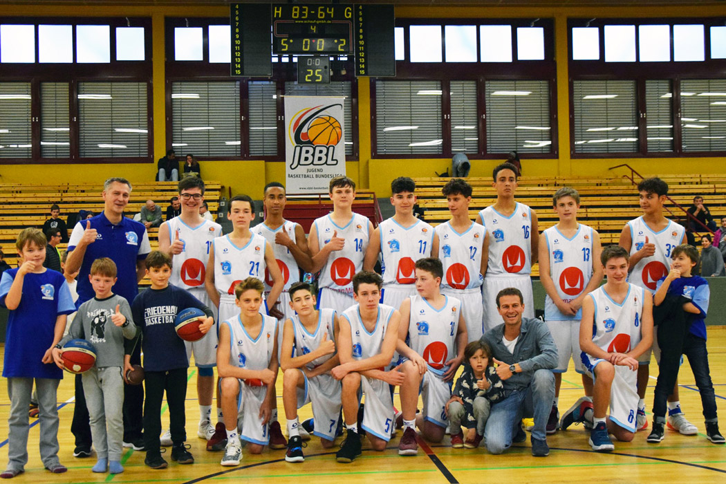 Nun ging das große Zittern los. Würde die Mannschaft wieder im 3/4 auseinander fallen, wie in allen bisherigen JBBL-Spielen? Nein, dieses Mal tat sie das nicht! Der MBC stürmte, Friedenau wehrte ab. Mit einer komfortablen 10-Punkte-Führung ging es in den Schlussabschnitt. Hier konnten die Friedenauer überzeugen und vor allem Dank des Anfeuerns der tollen Fans und des Hallensprechers Fabian von Wachsmann noch einmal richtig zulegen. Bis Minute 39 spielte sich das Team in einen kleinen Rausch, erzielte hier die höchste Führung des Spiels mit 25 Punkten. Am Ende gewann die Mannschaft verdient 83:64 und darf sich zurecht freuen, dass der Knoten (der Fluch des dritten Viertels) nun endlich geplatzt ist.