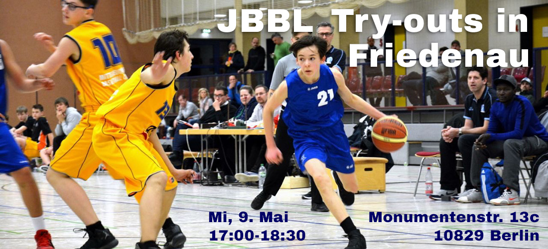 Hiermit möchten wir alle interessierten Spieler der Jahrgänge 2003 / 2004 / 2005 zum offenen JBBL-Try-out des Friedenauer TSC für die Saison 2018/19 einladen.