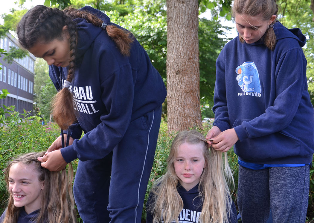 Am Samstagmorgen packten wir alle sehr müde aber auch aufgeregt vor dem 1. Spiel unsere Rucksäcke und sind teamweise zum Frühstück gelaufen. Danach mussten wir leider lange warten, bis uns endlich einer der Busse zu der etwas außerhalb gelegenen Halle mitgenommen hat.
