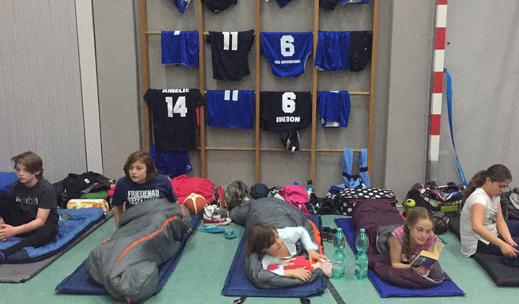 Wir schliefen in der gleichen Halle wie im letzten Jahr. Nach unserer Ankunft dort sollte es erstmal Pizza geben, auf die alle hungrig warteten und in der Zwischenzeit die Betten aufbauten. Nach der Pizza spielten wir alle noch ein bisschen Basketball, Werwolf oder quatschten bis es Zeit war Zähne zu putzen und dann auch irgendwann zu schlafen.