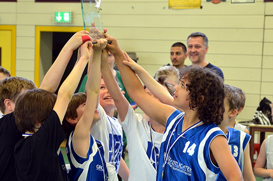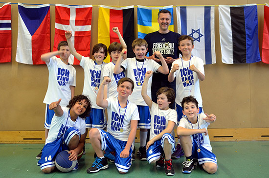 Zum Auftakt durfte unsere Mini U10 beim 2. Internationalen Eastercup in Moabit ran. Über vier Tage lang zeigte das Team tolle Leistungen und kämpfte sich bis ins Finale. Dort traf die Mannschaft auf das Team Bronshoj Dragons aus Kopenhagen. Nach gutem Start unserer Jungs (8:0) zeigten die Dänen Gegenwehr und holten Punkt für Punkt auf. In der Folge entwickelte sich das Match zu einem spannenden Finale mit intensiver Defense. Im letzten Viertel ging unsere U10 schließlich sehr konzentriert zu Werke, so dass der verdiente Erfolg von 29:20 zu Buche stand und die Siegertrophäe in den Händen der Friedenauer Kids in die Höhe gestemmt werden konnte.