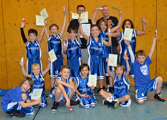 Der Turnierverlauf: Die Vorrunden-Gegner unseres Teams waren Köpenick 2, der BV Chemnitz, BB Süd und Alba Berlin 2. Unsere Jungs spielten überwiegend konzentriert und konnten dadurch alle Vorrundenpartien für sich entscheiden. Als Gruppensieger traf die Mannschaft im Finale auf den Gruppensieger der anderen Staffel: Alba Berlin 1. Den besseren Start im Finale erwischte Alba und führte rasch 7:0. Nach einer Auszeit fing sich jedoch unser Team und kam in der Folge ebenfalls zu Korberfolgen. Das Spiel war jederzeit eng, beide Teams schenkten sich nichts. Am Ende konnte sich unsere Mannschaft knapp behaupten und erzielte den Turniersieg.