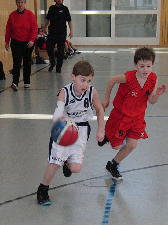 Samstag früh, minus 13 Grad…da hilft nur ein kleiner Ausflug nach Köpenick und viel Bewegung, um die Gelenke zu schmieren und auf Betriebstemperatur zu kommen! Aber trotz des ausgiebigen warm-ups vor dem Spiel, kam unsere U9 nur langsam in Schwung. Köpenick verteidigte gut und punktete vielversprechend in den ersten fünf Zehnteln der Partie. Entsprechend knapp fiel das Halbzeitergebnis von 22:27 für unser Team aus. Nach der Pause hatten unsere SpielerInnen offensichtlich die richtige Temperatur erreicht, denn es wurde besser verteidigt und vorne auch besser getroffen. Am Ende gewann unsere U9 verdient mit 39:61 beim BBC und freute sich einerseits über den 5. Sieg in Folge, andererseits über eine äußerst souveräne, nette und fröhliche Schiedsrichterleistung. Danke, Inken!