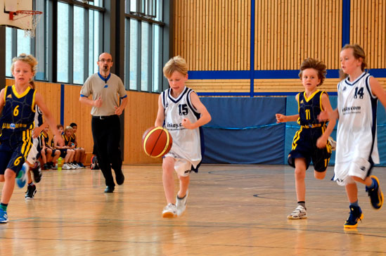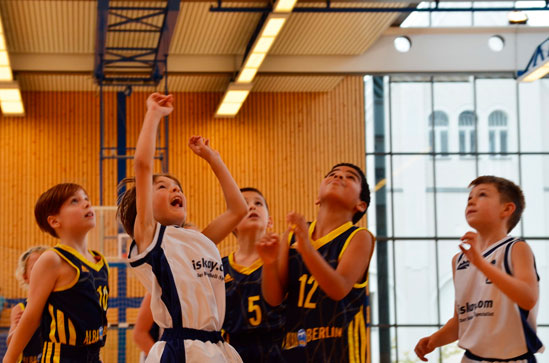 Minis U9. Sie gewannen in ihrem ersten Heimspiel gegen die Mannschaft von ALBA Berlin