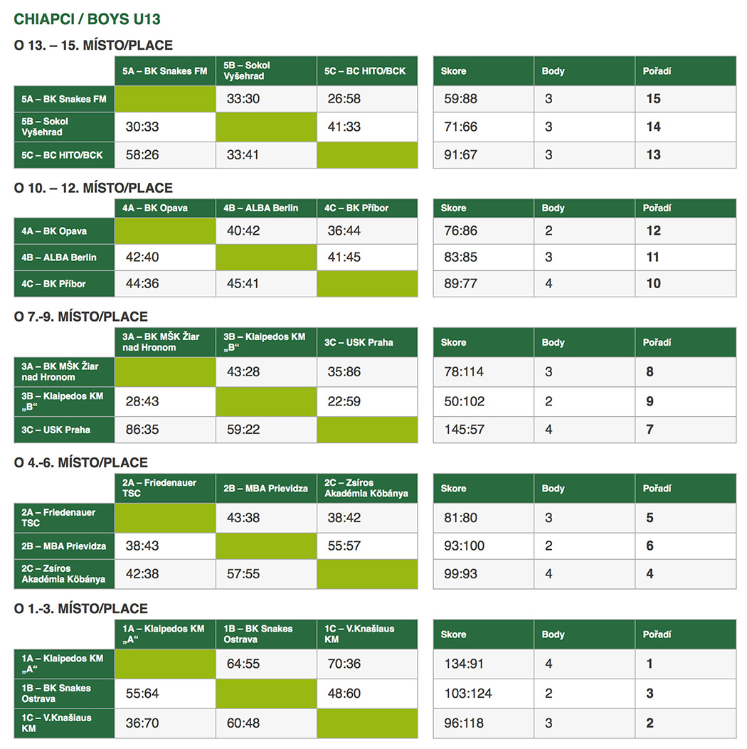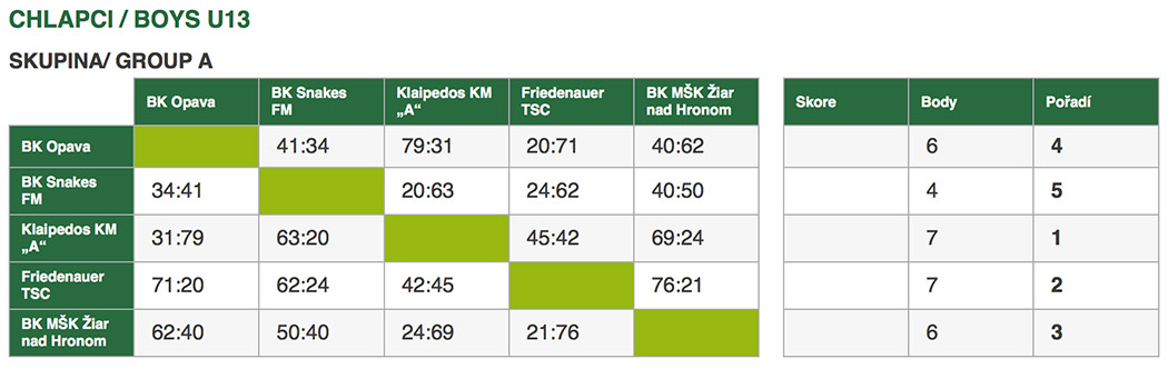 Am darauf folgenden Tag standen die beiden letzten Vorrunden-Spiele an. Die Mannschaft, verstärkt durch drei 2005er Spieler (Paule, Miron und Niki), hatte sich nun gefunden. So wurde der Lokalmatador aus Ostrava, die BK Snakes, mit rund 40 Punkten geschlagen und im Anschluss daran das slowakische Team BK Opava mit 51 Punkten Differenz besiegt. Dadurch erzielte die Mannschaft Platz 2 in der Vorrunde.