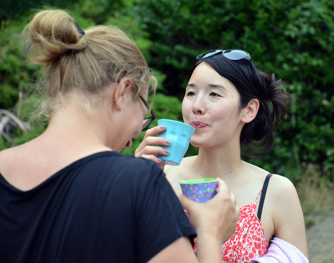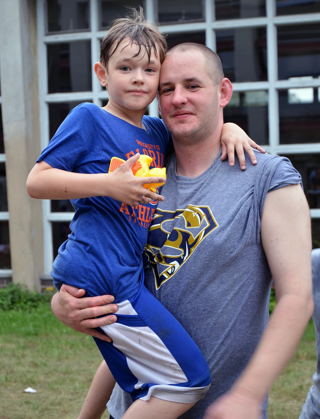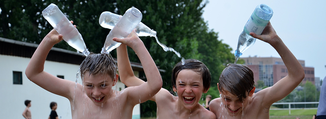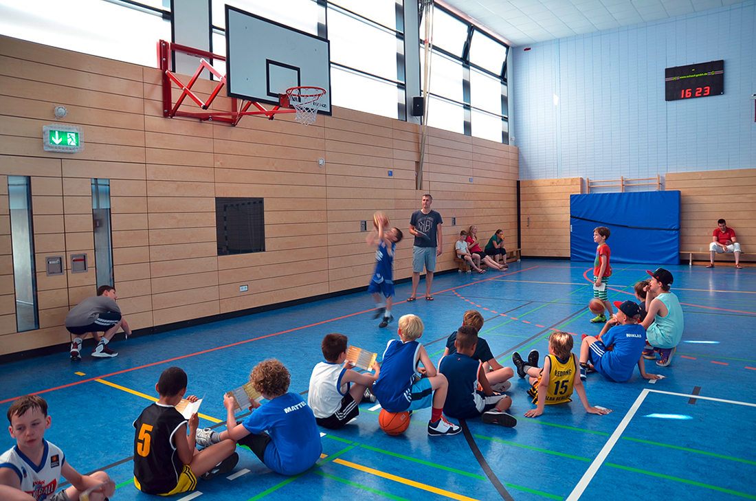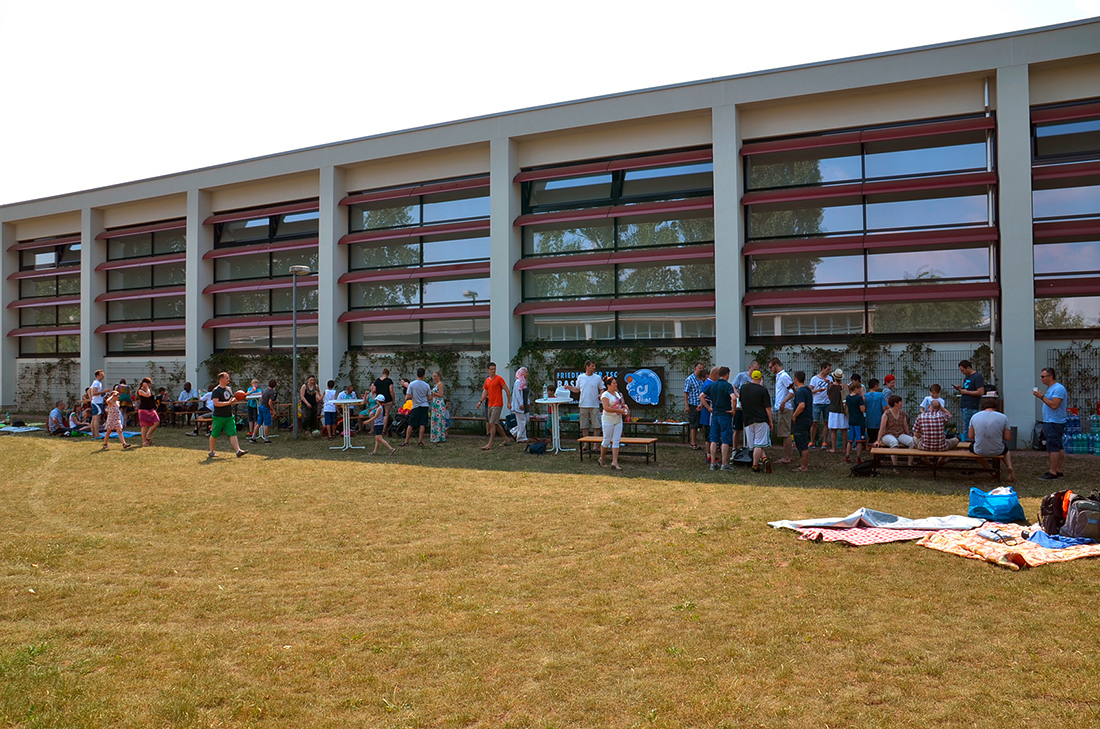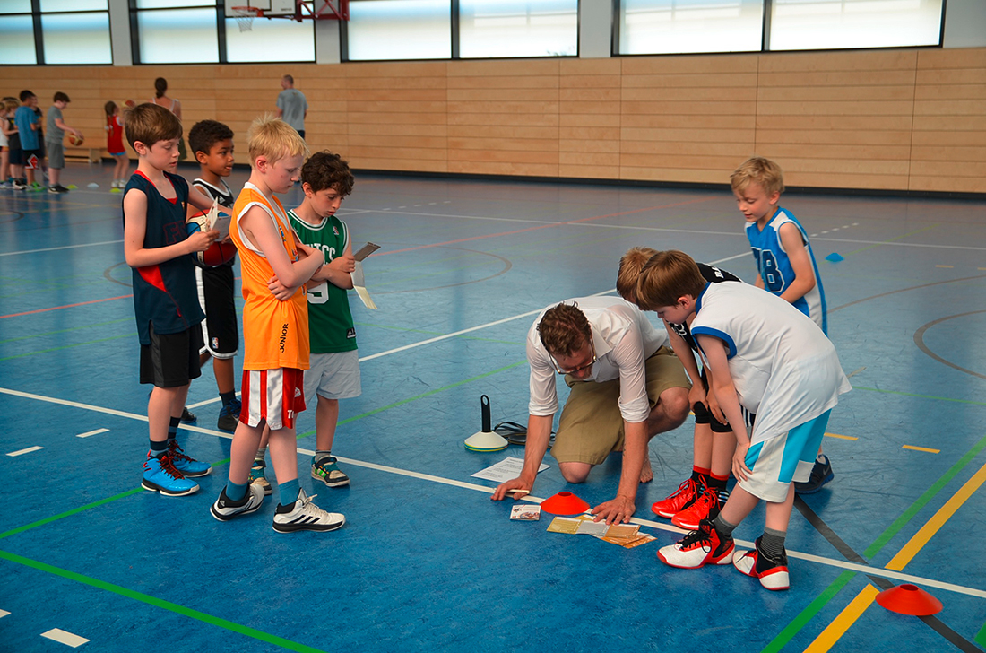 Während die Kids in der Monumenten-Sporthalle das DBB-Spielabzeichen in Bronze, Silber und Gold erzielen konnten, ließen es sich die Erwachsenen draußen am Buffet gutgehen. Wer es in der Halle aufgrund der Temperaturen nicht aushielt, tobte im Außenbereich herum oder umzingelte unsere Coaches und gab ihnen unfreiwillig-freiwillig-hingenommene, erfrischende Wasserduschen 😉