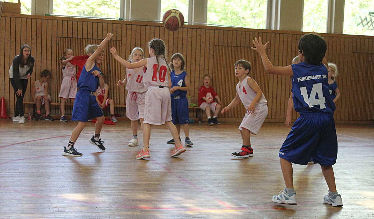Des einen Freud! Sonntag, 12 Uhr. Die U9 A spielt in Neukölln, für uns alle Neuland. Beide Teams brauchen ein bisschen, um in das Spiel zu finden. Im ersten Achtel findet der Ball kaum seinen Weg durch den Ring. Auch im zweiten Achtel lassen die Punkte noch auf sich warten. Aber im dritten Achtel…