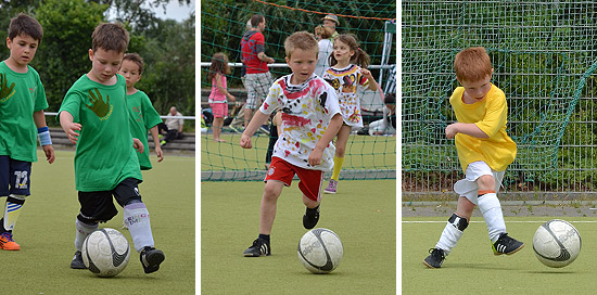 Die Jüngsten aus der Basketballabteilung zeigten an diesem Wochenende, dass sie auch abseits des Basketball-Courts einiges drauf haben: Gleich drei Sportskanonen der aktuellen MinisU7 (Jahrgang 2008!) waren am Sonnabend, 5. Juli, bei der Kita-Fußball-WM der Ev. Kita Götzstraße (Tempelhof) aktiv: Joël, Erik und Kai (auf dem Bild in verkehrter Reihenfolge) liefen stellvertretend für die Länder Mexiko, Brasilien und Deutschland auf und belegten nach tollem Einsatz die Plätze 5, 7 und 8.