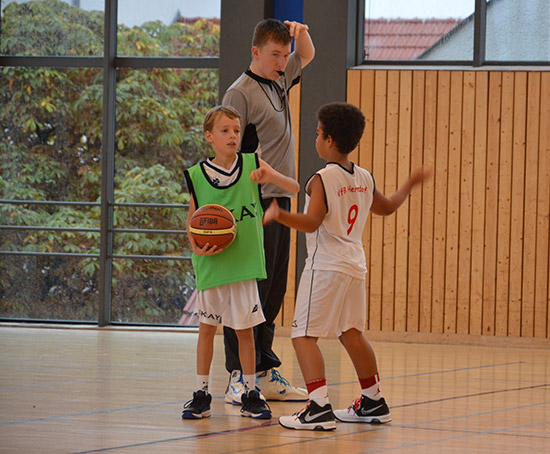 Nun sind auch unsere 2005er endlich in der Saison angekommen. Im ersten Spiel der Saison sah vieles schon sehr gut aus, was das Team zeigte. Zwar haperte es hier und da noch im Passspiel und an der Trefferquote, aber die neu zusammen gesetzte Mannschaft muss sich auch erst finden. Deshalb ist das Ergebnis zweitrangig, zumal Hermsdorf einige Spieler in den eigenen Reihen hatte, die bereits sehr versiert mit dem Ball umgingen und mit einer guten Trefferquote bei den Korblegern überzeugten.