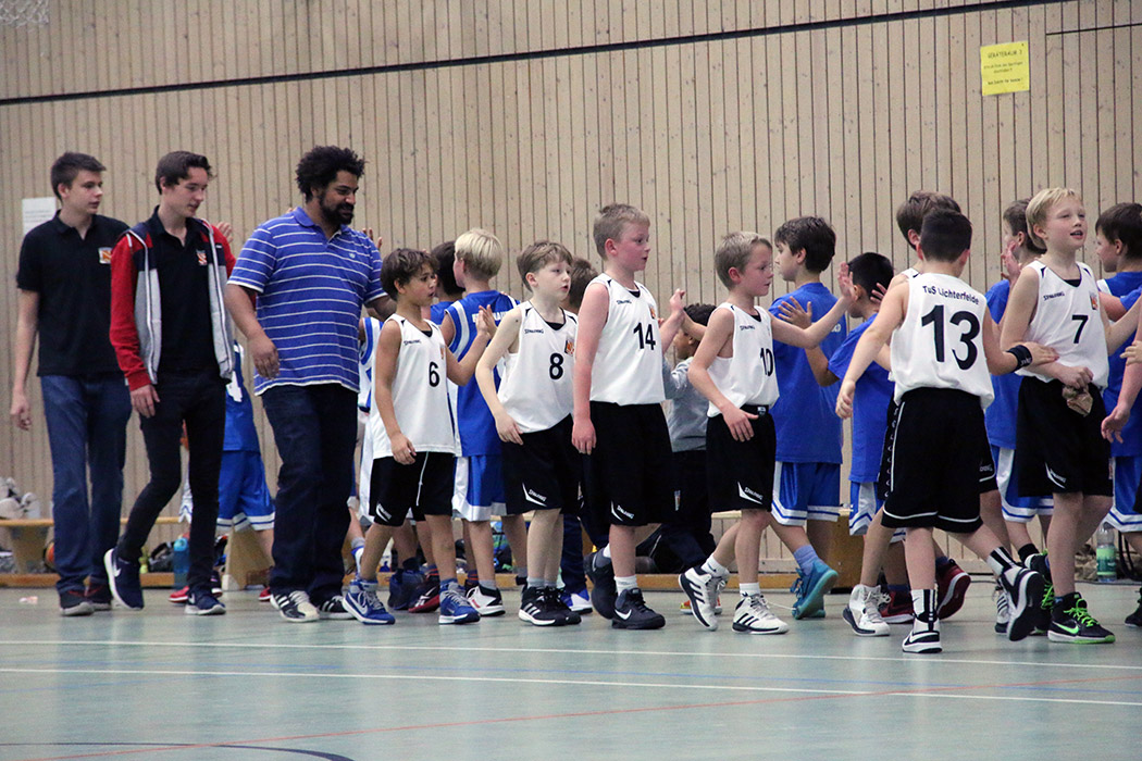Entsprechend motiviert gingen die Mammuts ins Match, machten die ersten beiden Punkte. Aber Lichterfelde präsentierte sich stark, spielte gut mit, verteidigte vor allem aggressiv. Dennoch gelang es unserem Team, zum Ende des 1/10 eine Führung von 11:3 heraus zu spielen. Es folgte ein offener Schlagabtausch bis zur Halbzeit. Tusli hatte einen zwischenzeitlichen 11-Punkte-Vorsprung der Friedenauer zu Nichte gemacht, Halbzeitstand 29:27 für die Mammuts. Ein enges Spiel bahnte sich an.