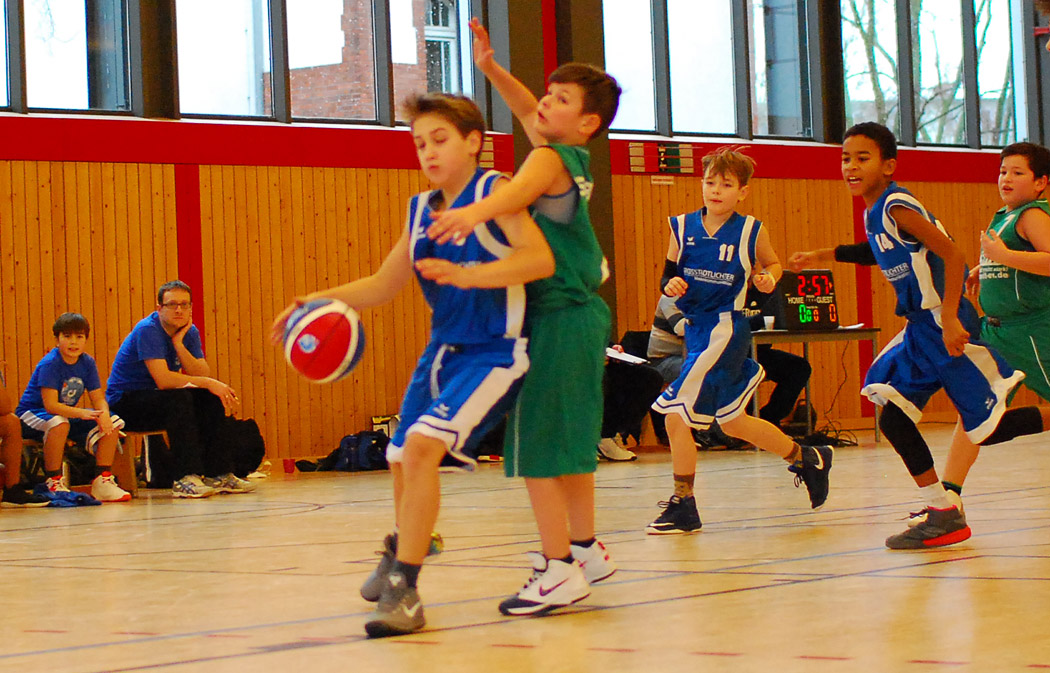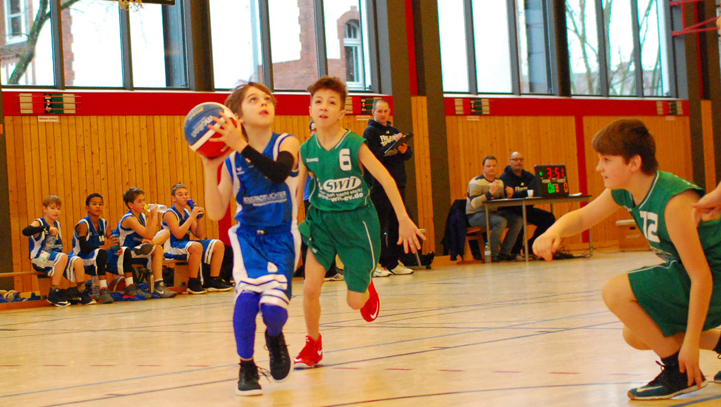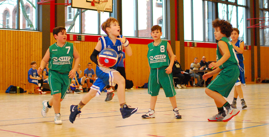 Ganze vier Kinder aus der U9 verstärkten am heutigen Tag das U10-Team gegen DBV, Rekord! Ob das die siegesverwöhnten 2007-er aus dem Konzept und zu viel Unruhe ins Spiel bringen würde? Weit gefehlt! Lennox, Lukas, Erik und Husni (Premiere!) fügten sich so nahtlos ins Team ein, als gehörten sie schon seit Monaten dazu! DBV legte zwar den ersten Korb vor, doch dann war die Defense der Mammuts zur Stelle, Bälle wurden erobert, und im Gegenzug flog der Ball drei Mal durchs Netz. Auch im Zweiten hielt DBV tapfer dagegen, aber die Friedenauer waren immer eine Nasenlänge voraus. Erst das dritte Zehntel konnten die Charlottenburger mit einem Korb für sich entscheiden. Scheinbar davon beflügelt, legten sie im Vierten so richtig los und überrollten die Mammuts ein bisschen. 12:3 für DBV, die Charlottenburger mit fünf Punkten vorne! Doch das ließen die Friedenauer nicht lange auf sich sitzen und hielten im Fünften mit viel Power dagegen – vor allem Alex zeigte plötzlich, dass er nicht nur verdammt schnell ist, sondern neuerdings auch gelernt hat, beim letzten Schritt des Korblegers abzubremsen und den Ball dann mit viel Konzentration und Gefühl im Korb unterzubringen. 10:0 für Friedenau, zur Halbzeit wiede mit 5 vorne!