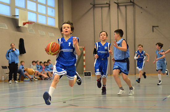 In der Sonntagspartie gegen BB Süd spielte unser U10 Team Blau von Beginn an eine intensive Verteidigung. Die Mannschaft verschaffte sich schnell einen Vorsprung und bestimmte das Spiel. Auch im zweiten Spielabschnitt wurde unterm Strich gut gearbeitet, es gab aber zu viele Fehlwürfe unseres Teams. Geburtstagskind Gian glänzte indes zur Freude seines Trainers mit einer taktischen Variante (gut zugehört und umgesetzt – Extra-Lob!) und belohnte sich selbst mit zwei schön heraus gespielten Punkten.