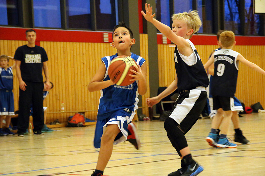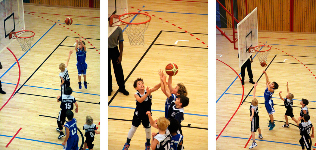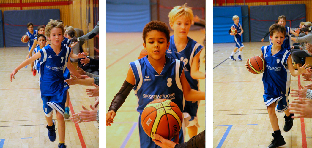 Kein Wunder also, dass bereits beim Warm-up häufiger als sonst zum Gegner hinüber geschaut wird. Unsere Jungs murmeln sich zu: „Sind ein paar Große dabei.“ Oder: „Treffen ganz gut Korbleger.“ Einer dann aber wieder selbstsicher: „Schaffen wir!“