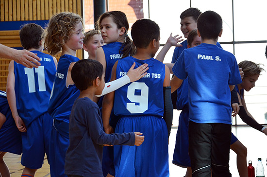 Am vergangenen Wochenende ist unsere U10F in ihrem letzten Saisonspiel gegen Alba Berlin 2 angetreten. Obwohl es ein etwas zerfahrenes Spiel auf Friedenauer Seiten war, konnte sich unser Team am Ende mit 59:49 durchsetzen und holte erstmals den Gruppensieg. Für die 2005er ein wirklich toller Erfolg! Mit von der Partie waren auch treue Fans und Eltern, die während der Saison fleißig in allen Bereichen unterstützt und angefeuert haben. Klar, dass da am Ende ein gemeinsames Gruppenfoto nicht fehlen durfte.