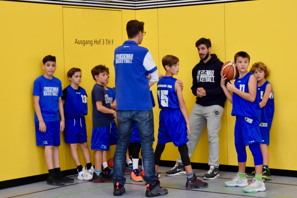 Der Schiri pfeift streng: Schritte, Schaufeln, kleine Schubser oder Zonenverteidigung lässt er nicht durchgehen und er erklärt den Jungs hüben wie drüben, was sie jeweils falsch gemacht haben.