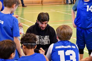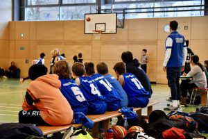 In der Pause versuchen die Coaches jeden einzelnen Mammut an die starke Anfangsphase zu erinnern: „Arme hoch in der Defense! Lange Pässe nur, wenn sie safe sind! Nach dem Korb sofort jeder an seinen Mann!“