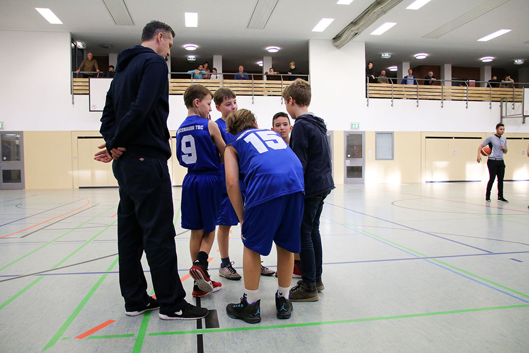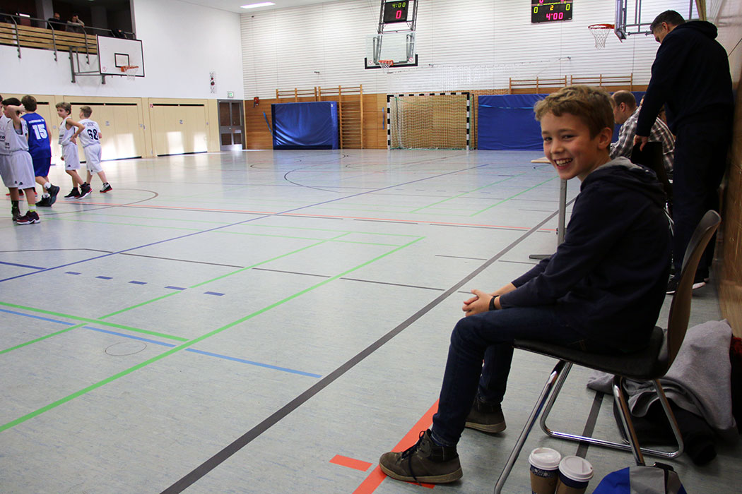 In der zweiten Halbzeit startete unser Team dann mit mehr Griffigkeit ins Spiel. Punkt um Punkt schob sich die Mannschaft nach vorn. Simon O., der an diesem Tage pausieren musste, jedoch genau so wie Dino zum Zuschauen kam und sein Team anfeuerte, wurde prompt von Coach Nick als „Co“ eingesetzt. Simon zeigte sich sehr engagiert, gab Anweisungen, durfte Platz einnehmen auf dem Coach-Stuhl und beriet sich immer wieder mit Nick, der sich an diesem frühen Sonntagmorgen gerne zurückhielt und auf eigene Entscheidungen des Teams setzte.