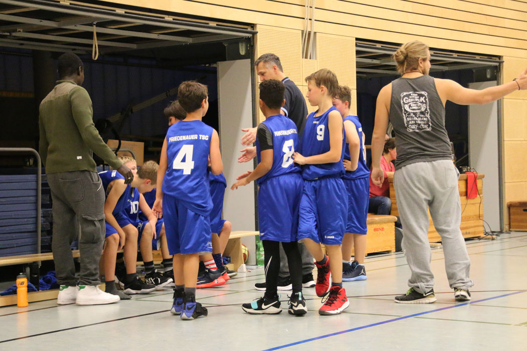 Gegen den SSC Südwest machte die Mannschaft von Anfang an klar, in welche Richtung gepowert wird. Nach einem 17:0-Blitzstart mit vielen schönen Passstafetten lag unser Team nach dem 1/4 mit 24:4 in Front. Zur Halbzeit erhöhten die Friedenauer gar auf 43:15. Eine kleine Vorentscheidung. Und auch in der zweiten Hälfte der Partie riss die Konzentration nicht ab. Alle Spieler punkteten und waren letztlich alle an einer souveränen Mannschaftsleistung beteiligt, die ein 102:48 Resultat hervorbrachte. Den ersten Kuchen („Hunderter“) der Saison erschoss sich dabei Simon O. zur Freude der Spieler und seiner Mama 🙂