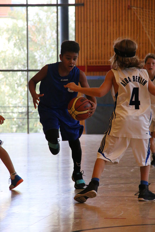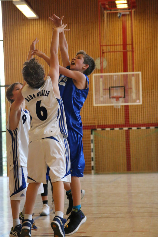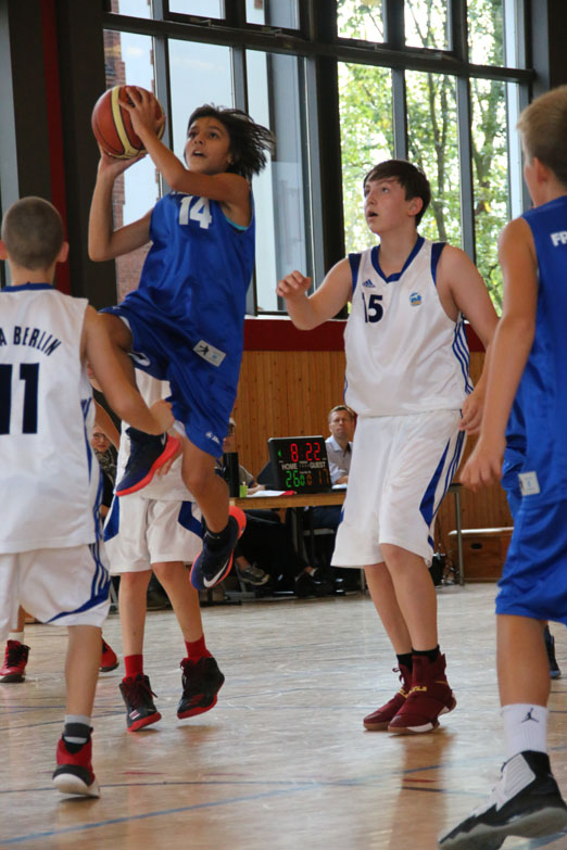 Ein etwas anderes Gesicht zeigte die Mannschaft von ALBA Kollwitz gegen unsere 06er im dritten Saisonspiel. Lange Zeit spielte ALBA gut mit, unsere Jungs hatten offensichtlich Respekt vor dem großen Namen. Doch im Laufe der Partie übernahm Friedenau des Zepter und hatte nach dem 3/4 ein Resultat von 69:40 auf der Anzeigetafel erzielt. Was dann geschah war kaum erklärbar. Mit hohem Tempobasketball und einer überragenden Trefferquote aus dem Feld spielten die Mammuts die Kollwitzer mit einem 42:4 im Schlussviertel an die Wand. Als das Team sich in der Endphase der „100“ näherte gab es allerdings nur ein Thema. Coach Nick nahm Simon O. vorsorglich vom Feld, damit Mama nicht schon wieder an den Ofen musste. So blieb es Andrej vorbehalten, den dritten Kuchen der Saison backen zu dürfen. Endstand der Partie 111:44.
