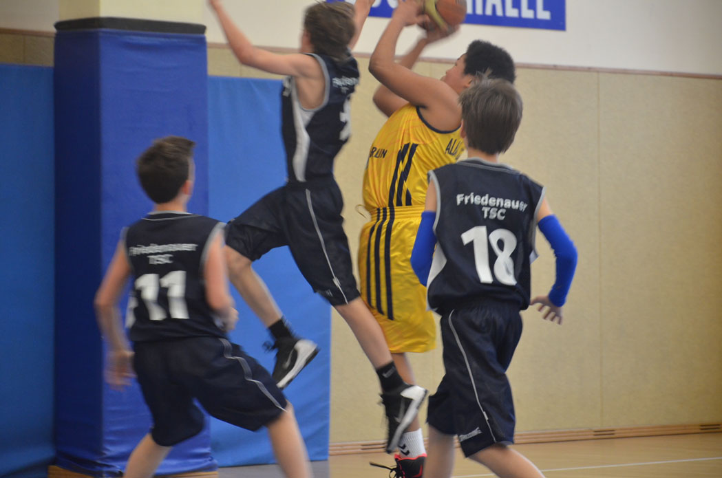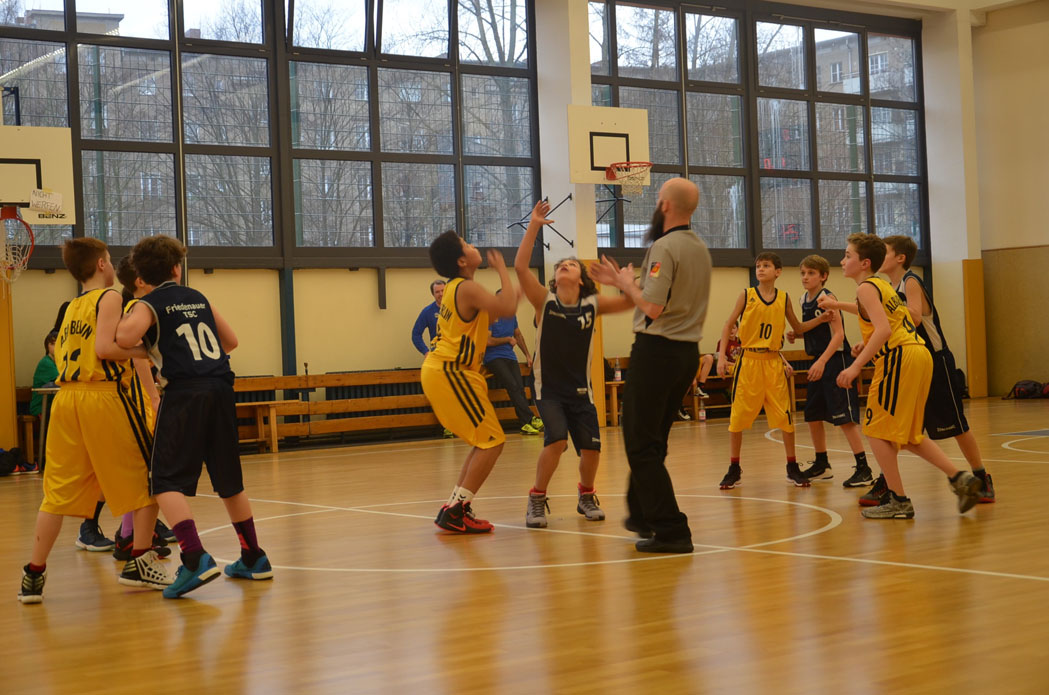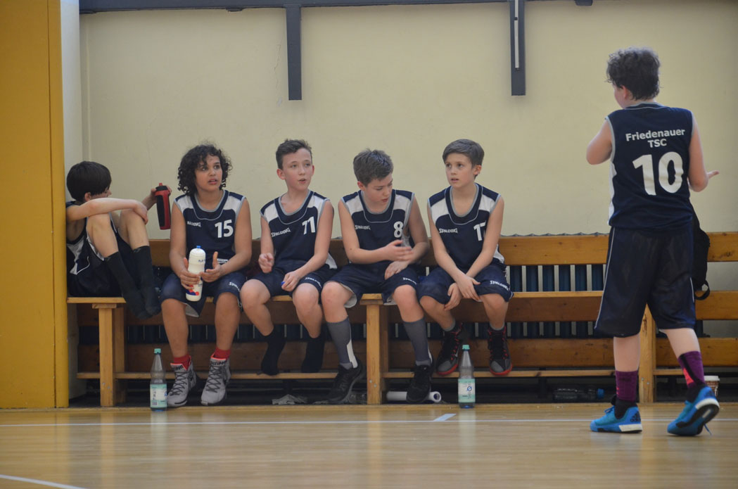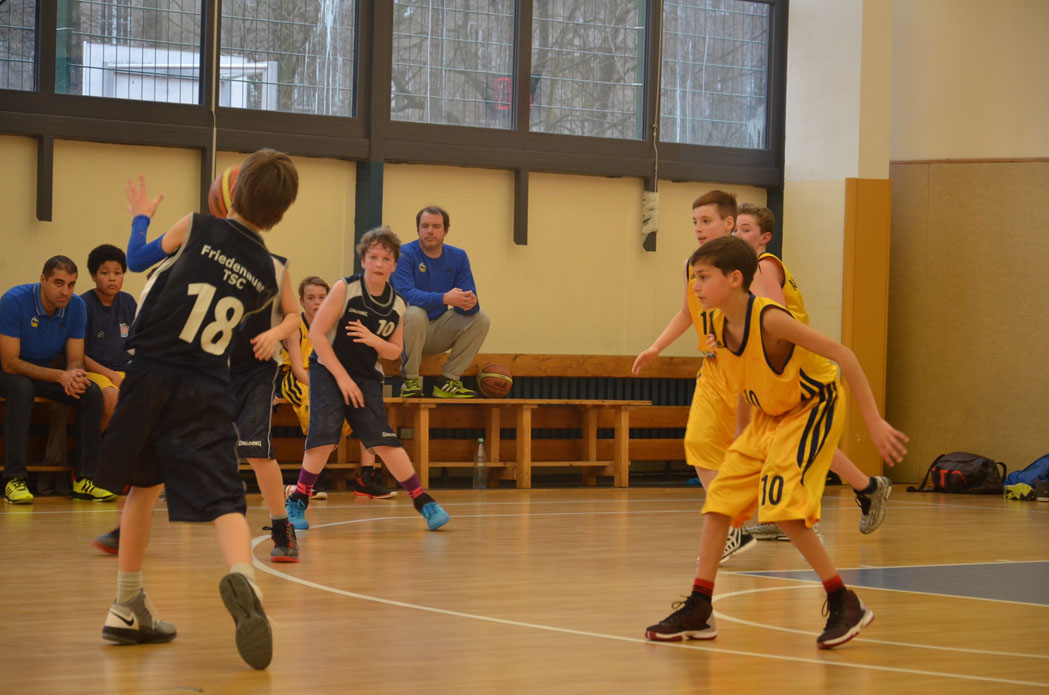 Wer gedacht hatte, Friedenau käme nach der Pause mit mehr Elan und Konzentration auf den Court zurück, hatte sich ordentlich verschätzt. Wieder waren es die Blau-Gelben, die mit einem Blitzstart (16:0) das Spiel klar machten. Allzu oft schauten unsere Jungs hinterher. Mit Nils und Kaya kassierten zudem zwei Leistungsträger das fünfte Foul. Nach dem Ausscheiden der beiden spielte unsere Mannschaft ein wenig „befreiter“ auf, denn zu verlieren gab es nichts mehr. So konnte der zwischenzeitlich hohe Vorsprung noch verkürzt und das vierte Viertel sogar mit 20:14 gewonnen werden. Moral: Positiv!