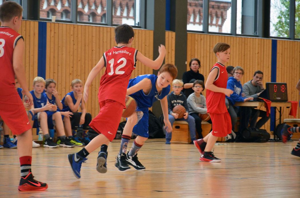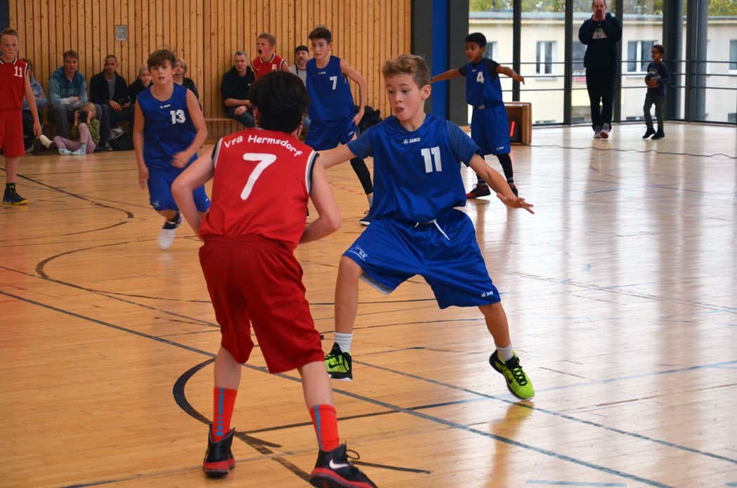 Seit geraumer Zeit gehört der Jahrgang 2005 des VfB Hermsdorf zu den talentiertesten Mannschaften in Berlin. Insofern gingen unsere Jungs am vergangenen Wochenende mit einer großen Portion Respekt in das Spiel gegen den VfB. Vielleicht war der Respekt ein wenig zu groß, denn Hermsdorf startete stark, ging schnell mit 5:2 in Führung. Doch unser Team ließ sich nicht lange bitten und hielt dagegen. Die Führungen wechselten nun hin und her, doch zwingender in diesem ersten Viertel war der VfB und ging folgerichtig verdient mit 18:15 vom Parkett.