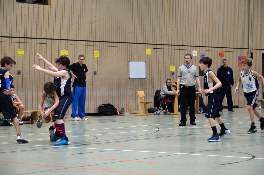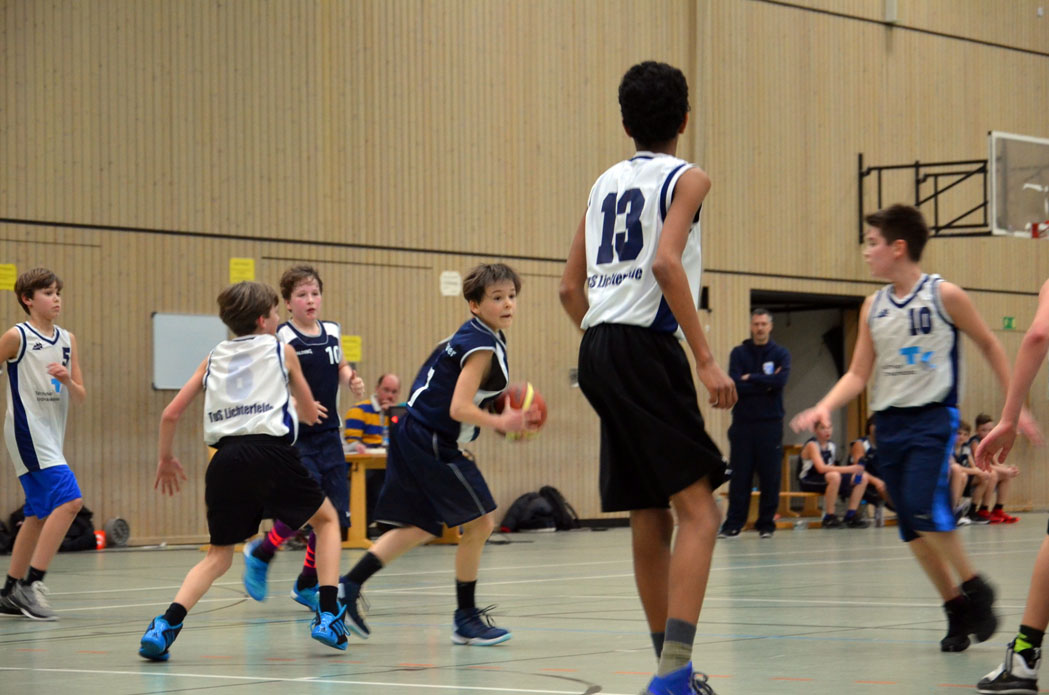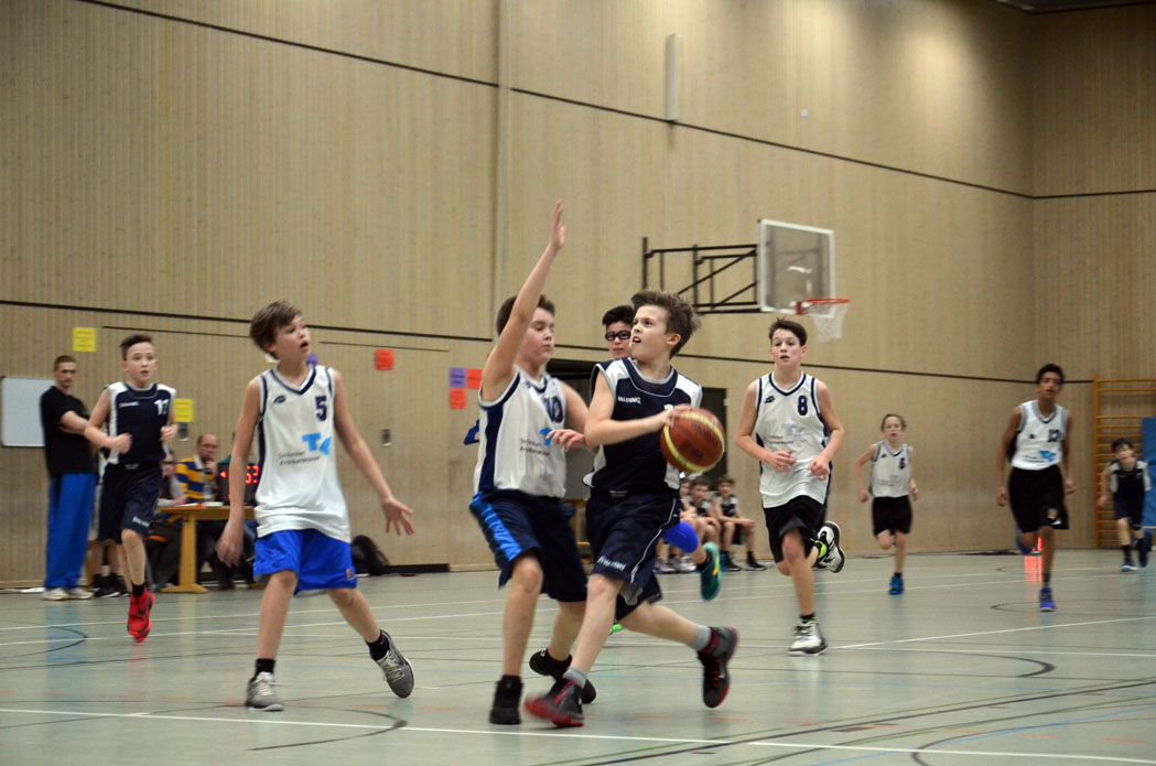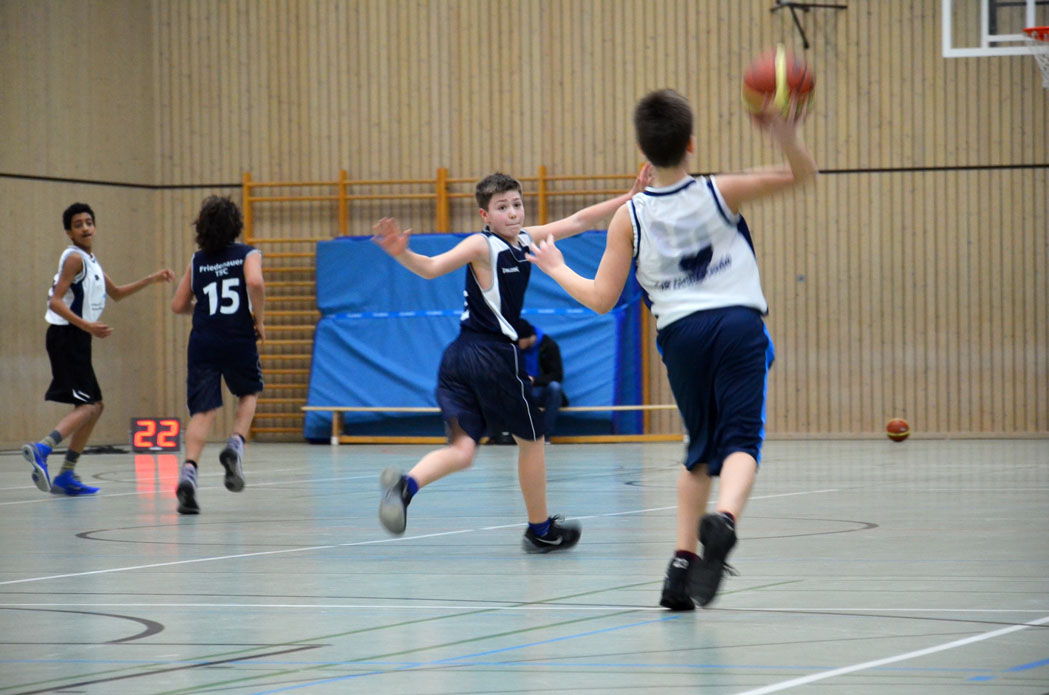 Vor allem in den ersten Minuten des Spiels zeigte der TuS Lichterfelde, wie motiviert das Team gegen unsere U12 war. Tusli legte bis zur 4. Minute einen astreinen Start hin (9:5). Doch dann begannen unsere Jungs sich in das Spiel „hineinzubeißen“. Immer wieder zogen die Friedenauer zum Korb und kassierten Freiwürfe. Die Führung wechselte hin und her, doch nach dem Gleichstand von 16:16 übernahmen unsere Jungs vollständig die Kontrolle über das Spiel. Sie agierten äußerst konzentriert und markierten zum Ende des ersten Viertels einen 9:0-Pfad zur 25:16-Führung.