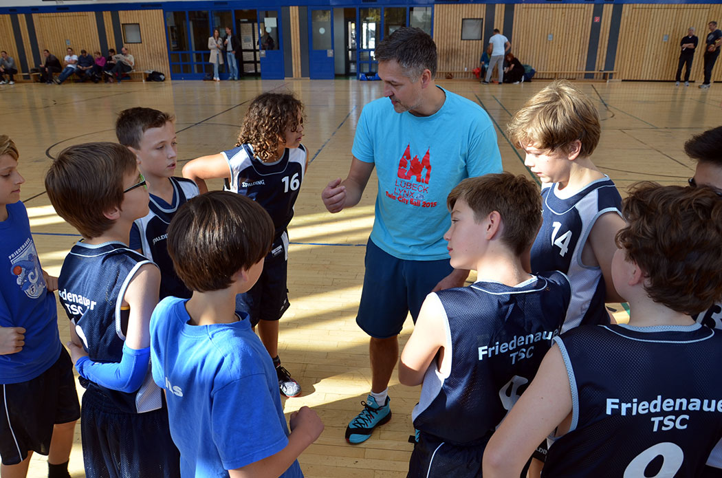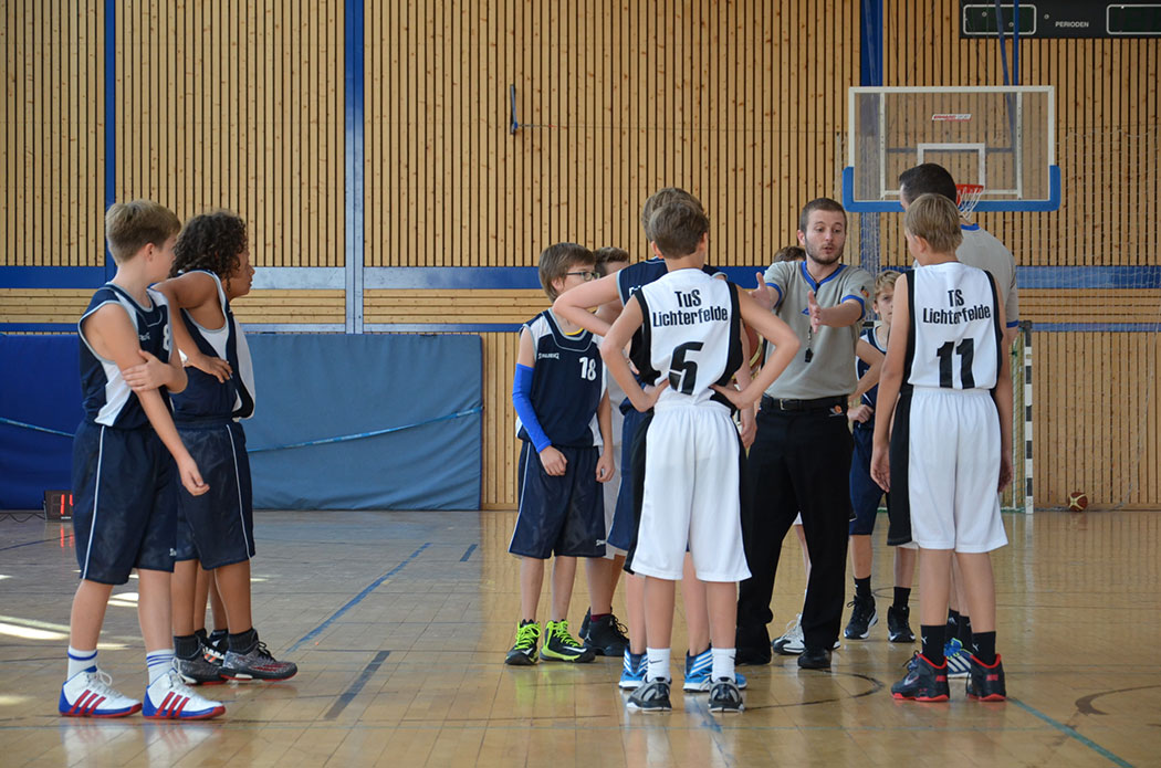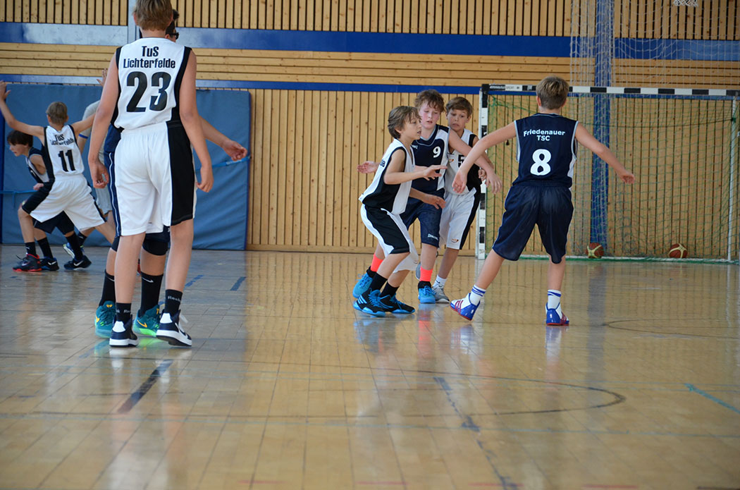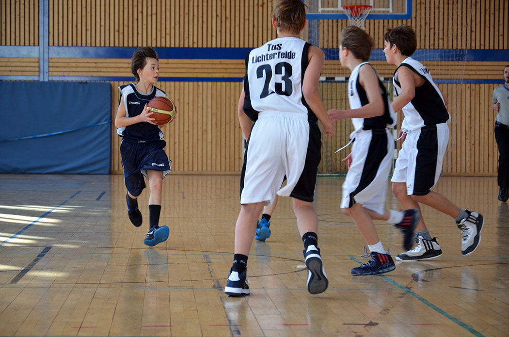 Etwas stotternd lief der Motor unserer Jungs im ersten Viertel gegen die Gäste aus Lichterfelde und kam noch nicht so richtig auf Betriebstemperatur. Tusli präsentierte sich hingegen treffsicher und lag nach den ersten zehn Minuten mit einer Führung von 18:15 vorn. Im zweiten Viertel legte unser Team dann aber los wie die Feuerwehr, erspielte sich ein ums andere Mal gute Wurfchancen und konnte das Ergebnis zu einem 43:29 für Friedenau drehen. Besonders Leon zeigte sich in guter Spiellaune.