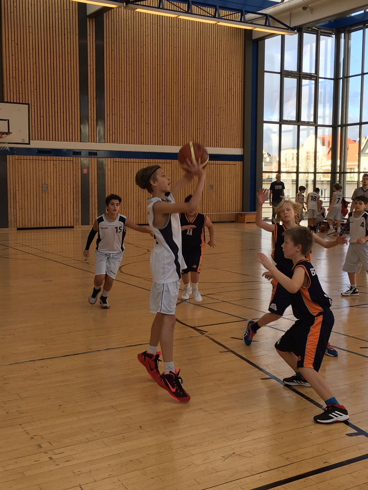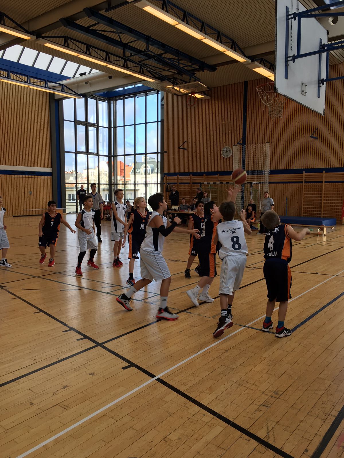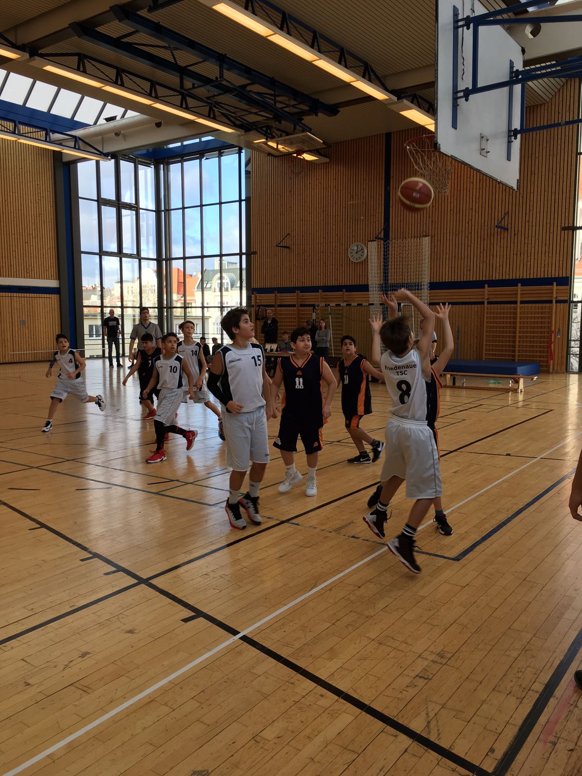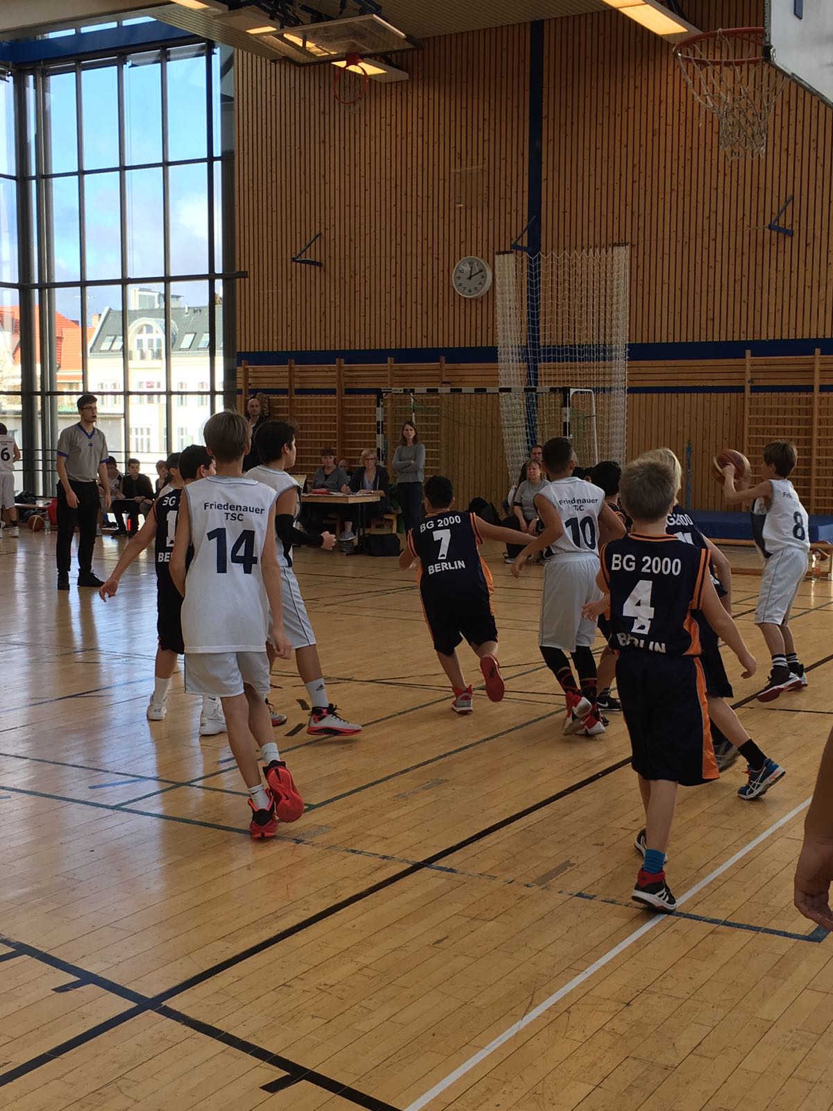 Nach dem knappen Heimsieg gegen Tusli 5 (52:43) und dem deutlichen Erfolg in Stahnsdorf (87:54), kam am Wochenende der Tabellenletzte der mu14 BZB nach Friedenau. Leider gab es eine Doppelbelegung in der Halle, deshalb musste das Spiel auf dem Halbfeld stattfinden. So war klar, dass kein wirklicher Spielaufbau und -fluss stattfinden konnte. Das Spiel begann etwas schleppend, aber letztendlich konnten sich die Friedenauer deutlich mit 104:20 absetzen. Damit ist die Hinrund abgeschlossen und das Team konnte sich von Spiel zu Spiel steigern. Prima, Jungs!