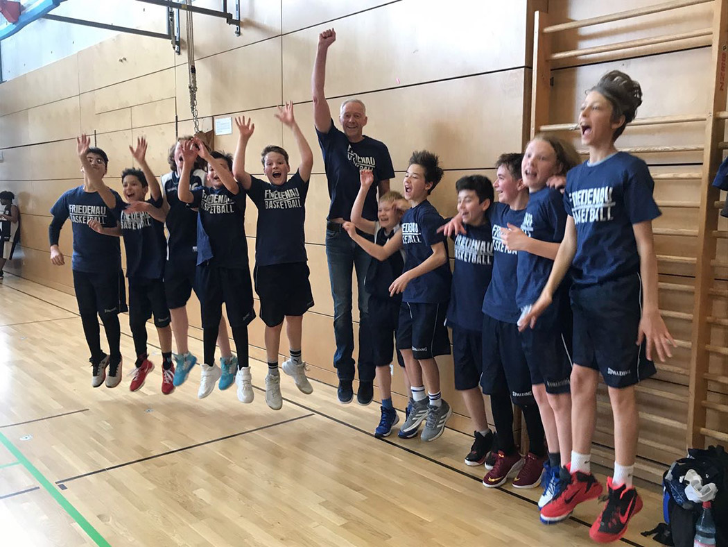 Friedenau 2 konnte in der Vorrunde am Samstag mit Siegen über ALBA Berlin 5 (46:31), BSC (47:34) und Einheit Pankow (49:17) den Gruppensieg erzielen. Das Team war somit gesetzt für die 2. Runde am Sonntag, in der es auf Empor traf. Auch hier überzeugte unsere Mannschaft in einer intensiv geführten Partie und stellte am Ende einen 40:30-Erfolg sicher. Damit steht das Team, wie Friedenau 1, ebenfalls im Achtelfinale der U14 Qualifikation.