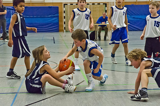 Unsere Minis U8 mussten am Sonntag bei den City Baskets aus Charlottenburg antreten. Der Start war etwas holperig. Vielleicht lag es an den beiden Riesen, die City aufs Feld schickte…? In jedem Fall zeigte unser Team ungewohnte Wurfschwächen und wirkte verunsichert. Fast kein Wurf wollte reinfallen in den Korb. Die Anfangsnervosität sollte in der ersten Halbzeit beibehalten werden. City überzeugte durch gutes Reboundspiel und kam immer wieder zu leichten Punkten.