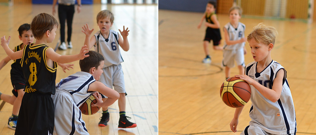 Im dritten Zehntel drehte Kai so richtig auf. Unser Jüngster fing mehrere Rebounds in der Defense, dribbelte mutig nach vorne, machte zwei wunderschöne Korbleger, die aber leider ganz knapp daneben gingen. Dafür war Luca zur Stelle, fing den Rebound und traf den Wurf! Lennox legte noch einen nach, 13:6 für Friedenau!