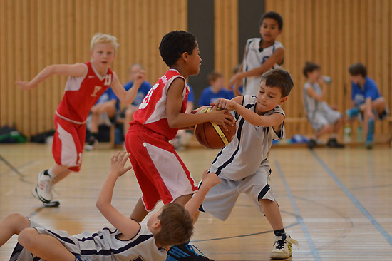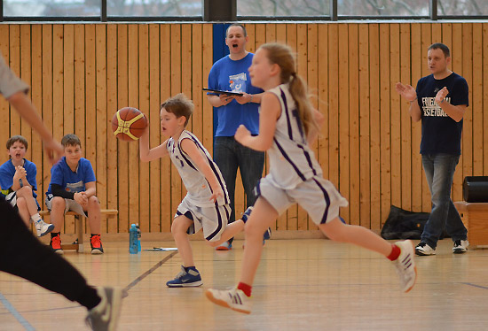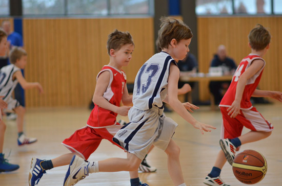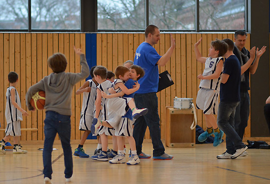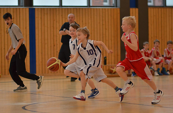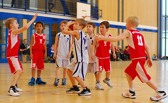 Zum Saisonfinale in der U8 empfängt der TSC den Vfl Lichtenrade in der Münchener Straße. Und wir gehen direkt ins erste Zehntel: Verbissen wird auf beiden Seiten um jeden Ball gekämpft, die Teams wirken absolut gleichwertig. Was für ein Einsatz! Es steht 4:4. Auch im zweiten Zehntel kann sich kein Team deutlich absetzen, die Friedenauer erkämpfen sich aber, unterstützt von ihren tobenden Fans, die eine tolle Stimmung in die Halle zaubern, eine knappe 12:10-Führung. Doch Lichtenrade schlägt zurück! mit einem 4:0 im dritten Zehntel gehen die Roten in Führung! Jetzt scheinen die kleinen Mammuts etwas den Faden verloren zu haben. Die Verteidigung wird immer durchlässiger, die Lichtenrader nutzen das gnadenlos aus, es steht 20:14 für die Roten! Doch jetzt kommen die Friedenauer, erst zwei Freiwürfe drin, dann noch drei Körbe, ein 8:0-Zehntel für die Blauen, zur Pause steht es 22:20 für Friedenau!