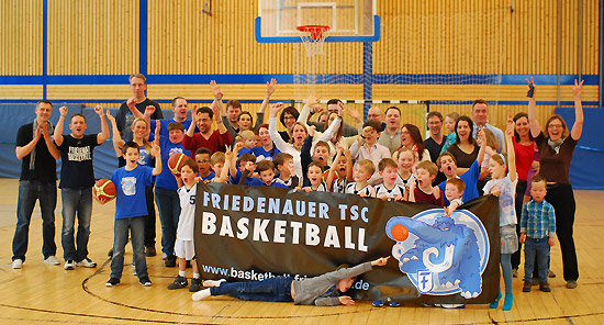 Die zweite Hälfte beginnt mit einem tollen Lauf für Lichtenrade, der Vfl übernimmt die Führung mit 26:24, was für ein Kopf-an-Kopf-Rennen! Jetzt wird noch verbissener gefighted, die Verteidigung ist wachsam auf beiden Seiten, kein Wunder, dass die Trefferquoten nachlassen, es gelingen nur ein Korb für Lichtenrade im siebten Zehntel und einer für Friedenau im achten … Das neunte Zehntel beginnt, und Lichtenrade kann sich einen Sechs-Punkte-Vorsprung erkämpfen. Ist das die Vorentscheidung? Doch keiner hat mit der Friedenauer Geheimwaffe gerechnet: Trainerkollege Nick greift sich die Trommel und treibt das Team und die Fans gleichermaßen an, die Halle bebt! Die so angefeuerten Mammuts legen einen 6:0-Lauf aufs Parkett! Unglaublich! Das Spiel ist ausgeglichen! 32:32 steht es in diesem Krimi-Finale vor dem zehnten Zehntel! Wer hat die stärkeren Nerven, den eiserneren Willen, das sicherere Händchen? Lichtenrade? Korb für die Roten, der Vfl geht in Führung! Doch da rollt die nächste Angriffswelle auf den Lichtenrader Korb, Treffer! Und noch einer! Und noch einer! Grandios! Die Friedenauer machen mit drei Körben den Sack zu! Das Spiel ist aus! Der TSC gewinnt mit 38:34!