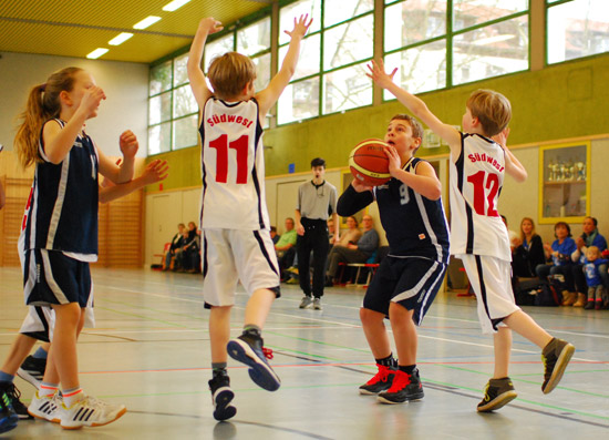 Und der Rest der Geschichte? Das Spiel war natürlich aus Friedenauer Sicht keine Glanzleistung, Südwest durfte relativ ungehindert Palau und wirkungsvolle Defense zelebrieren und ging als klarer Sieger vom Feld. Aber die Stimmung in der Halle … war so einzigartig wie noch nie bei den kleinen Mammuts! Die von Minute zu Minute nervöser und besorgter dreinschauenden Friedenauer Eltern stimmten Schlachtrufe an, tobten auf den Bänken und gingen aus sich heraus, wie es keiner für möglich gehalten hätte! Gut gemacht, Kinder! Jetzt haben eure Eltern und Fans bewiesen, dass sie auch mal so richtig Stimmung machen können! Und nächste Woche, beim letzten Spiel der Saison, spielen wir dann wieder richtig Basketball! Abgemacht!