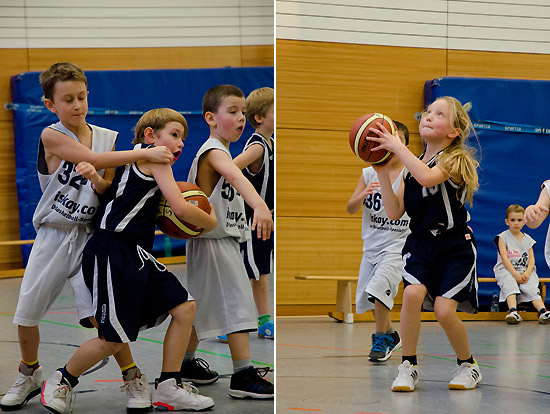 Doch damit der Premieren nicht genug: Die niedriger hängenden Körbe bei City eröffneten neue Möglichkeiten, und so konnte unser Kleinster und Jüngster Erik seine ersten beiden Feldkörbe feiern! Für ihn gab es bei einer mutigen Dribbelaktion fast an der gesamten rechten Außenbahn entlang sogar Szenenapplaus von sämtlichen anwesenden Zuschauern inklusive der City-Eltern.