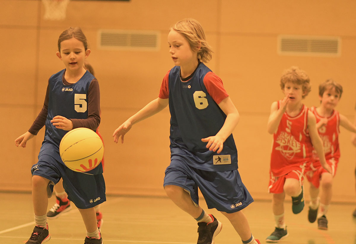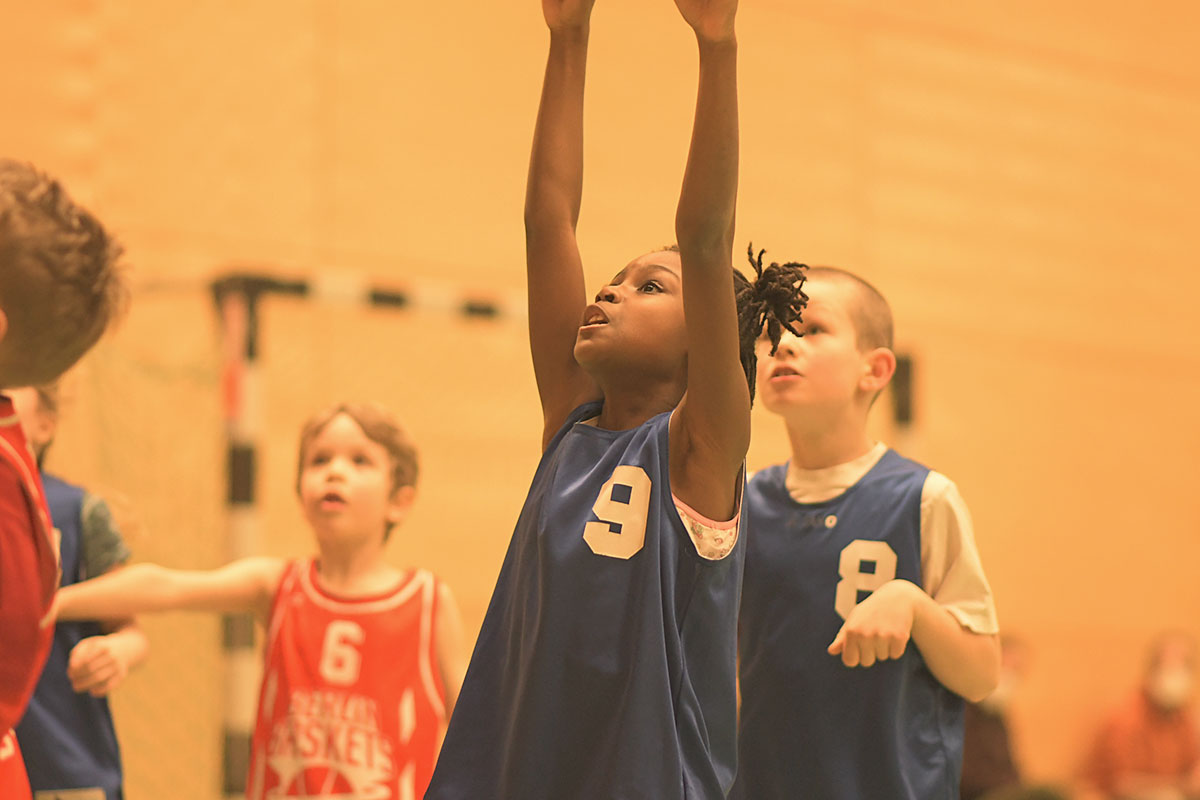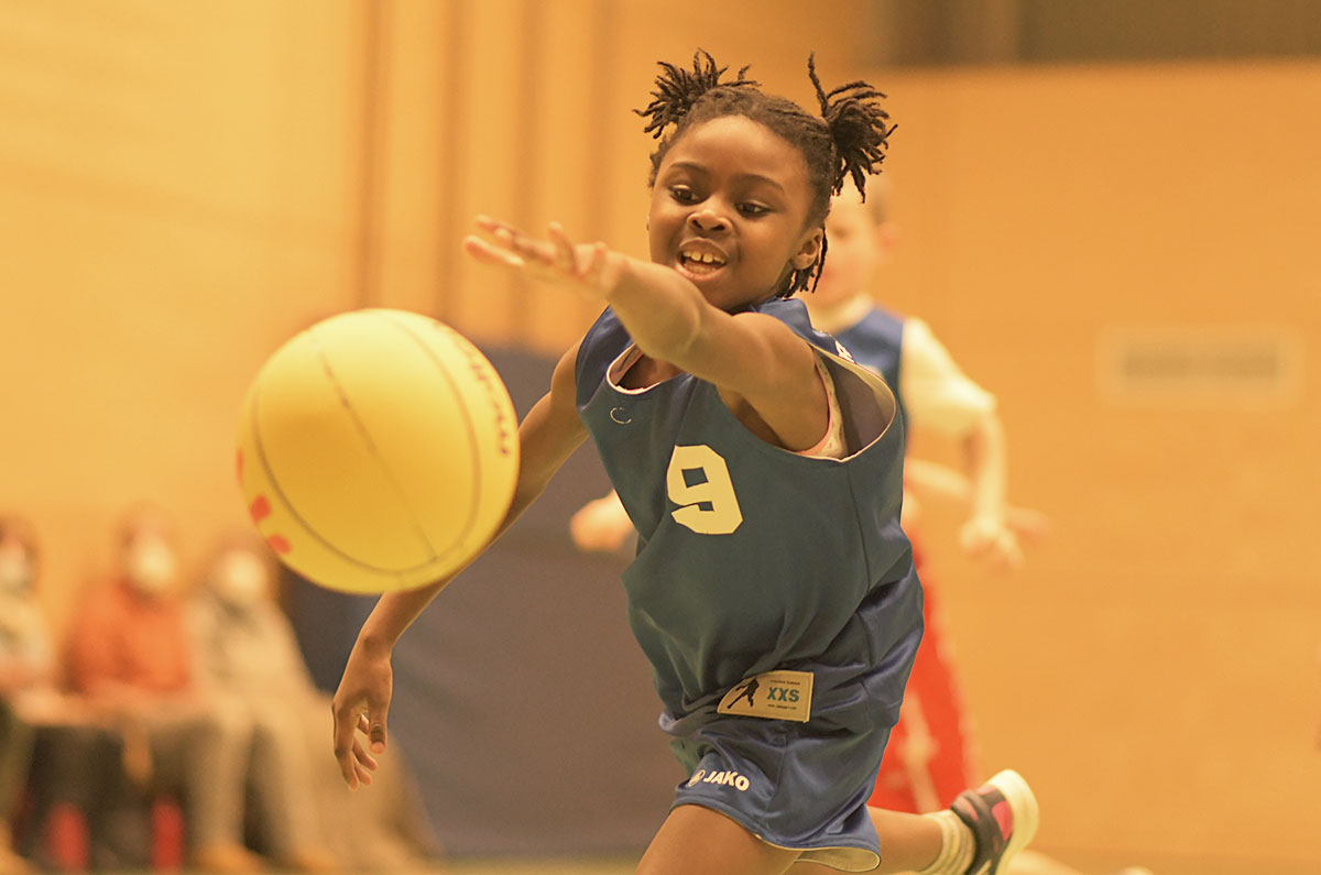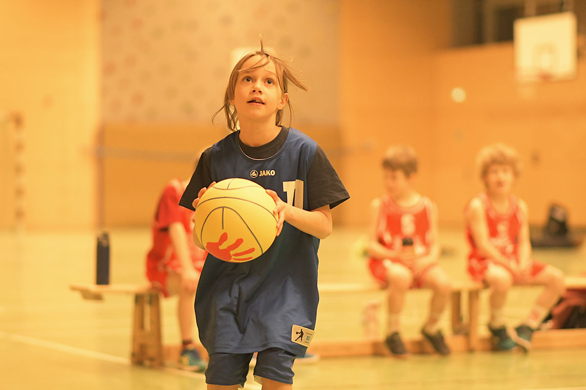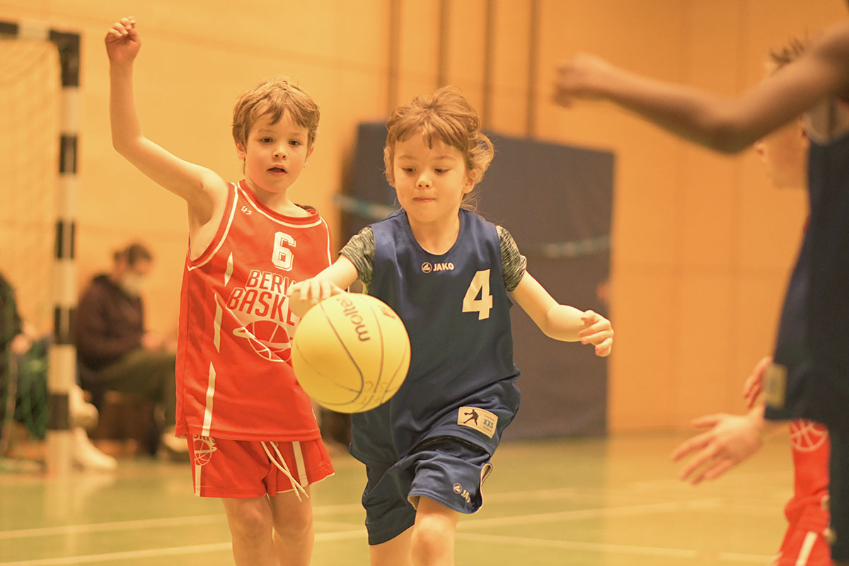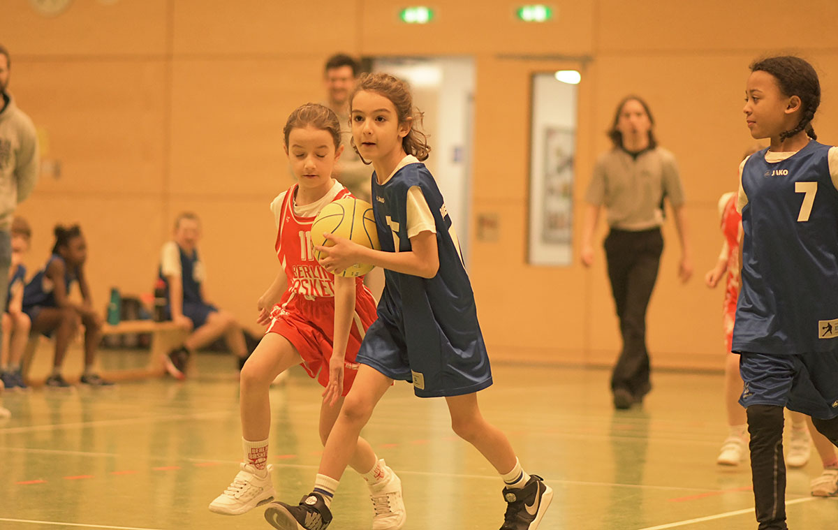 Auch die zweite Hälfte verlief insgesamt deutlich ausgeglichener. Die Mammuts verteidigten weiterhin mit mehr Disziplin und entwickelten auch im Angriff mehr Zug zum Korb. So schafften es die Kinder immer wieder, sich in aussichtsreiche Wurfpositionen zu bringen, was mit drei weiteren Treffern belohnt wurde. Vor allem aber an der lautstarken Unterstützung von der Bank ließ sich erkennen, dass die Mammuts nun mit vollem Feuer im Spiel waren: Die gesamte zweite Hälfte lang hallte der Schlachtruf „Weiß-Blau-Friedenau!“ ununterbrochen durch die Halle.