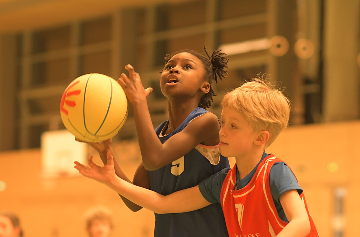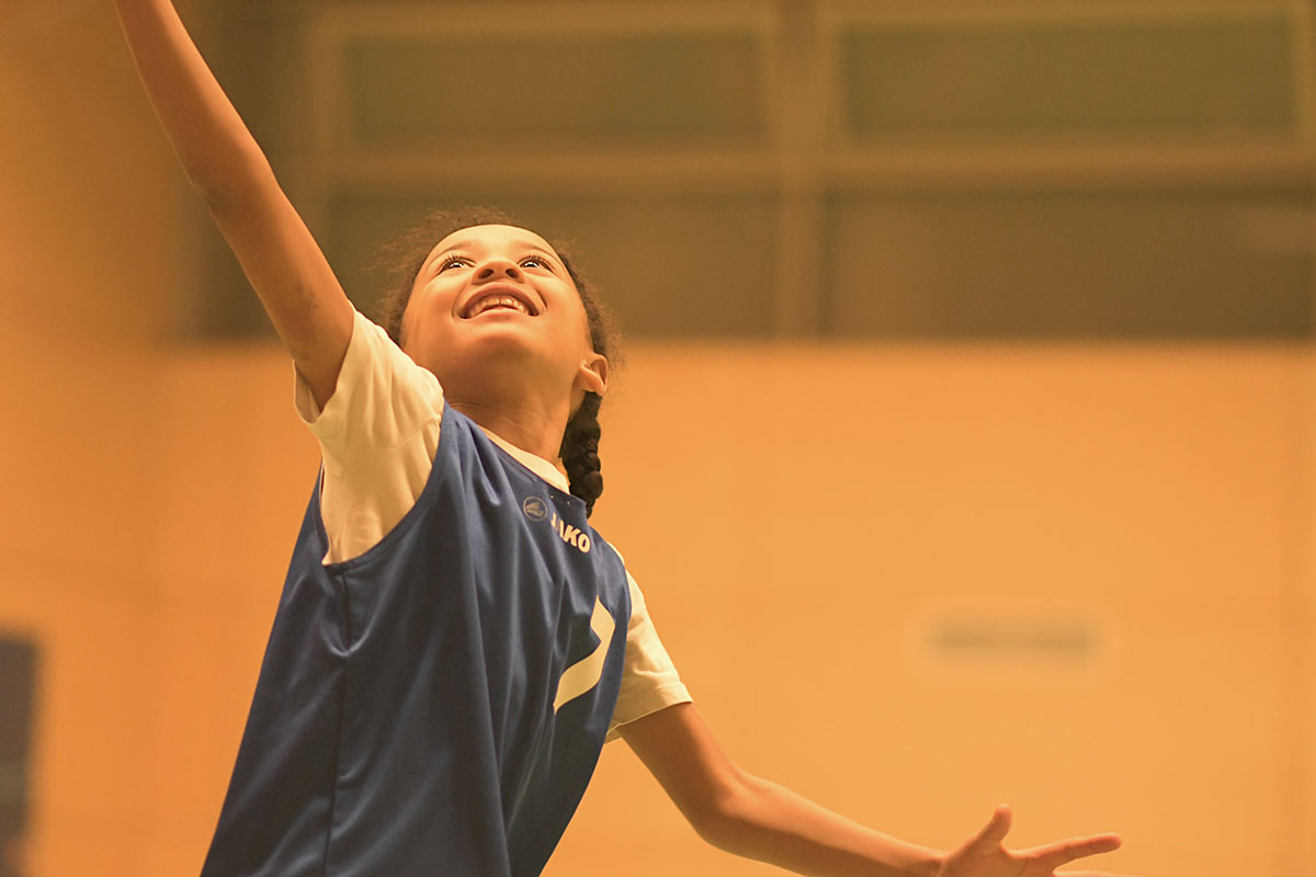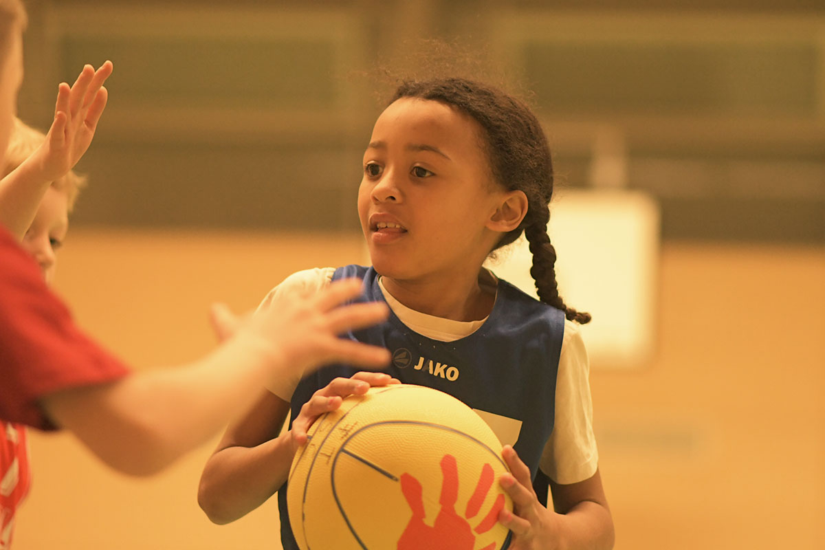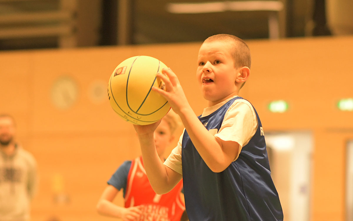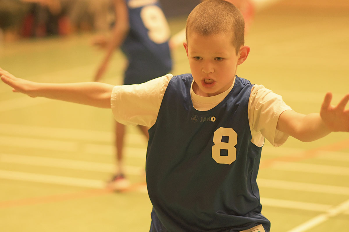 Auch die zweite Hälfte verlief insgesamt deutlich ausgeglichener. Die Mammuts verteidigten weiterhin mit mehr Disziplin und entwickelten auch im Angriff mehr Zug zum Korb. So schafften es die Kinder immer wieder, sich in aussichtsreiche Wurfpositionen zu bringen, was mit drei weiteren Treffern belohnt wurde. Vor allem aber an der lautstarken Unterstützung von der Bank ließ sich erkennen, dass die Mammuts nun mit vollem Feuer im Spiel waren: Die gesamte zweite Hälfte lang hallte der Schlachtruf „Weiß-Blau-Friedenau!“ ununterbrochen durch die Halle.
